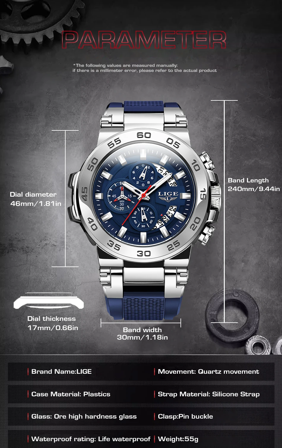 Relojes LIGE 2025 para hombre, nuevos, a la moda, con correa de silicona, sencillos, deportivos, militares, con fecha, resistentes al agua 50M, de cuarzo, para caballero, reloj + caja.