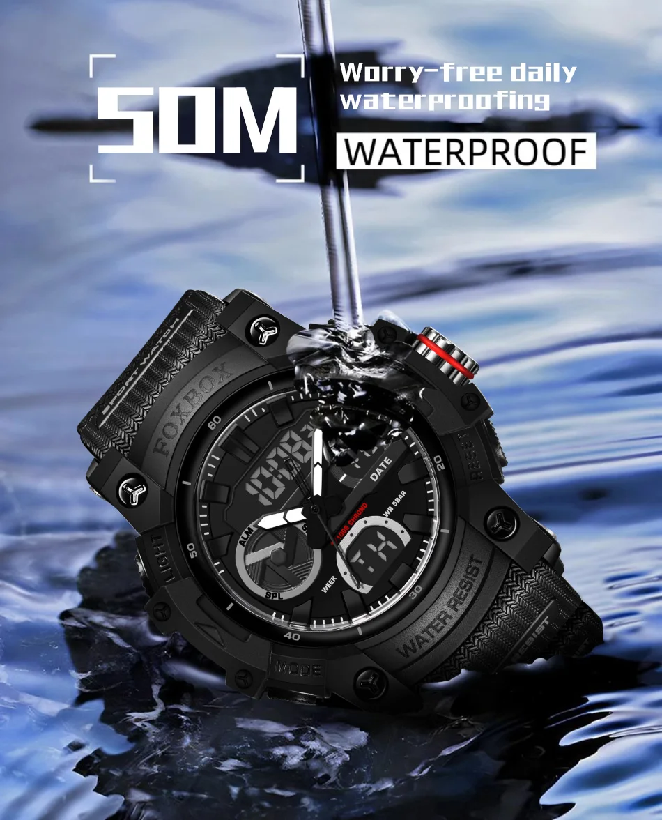 Reloj militar digital LIGE para hombre, resistente al agua hasta 50 m, LED, de cuarzo, deportivo, grande, masculino