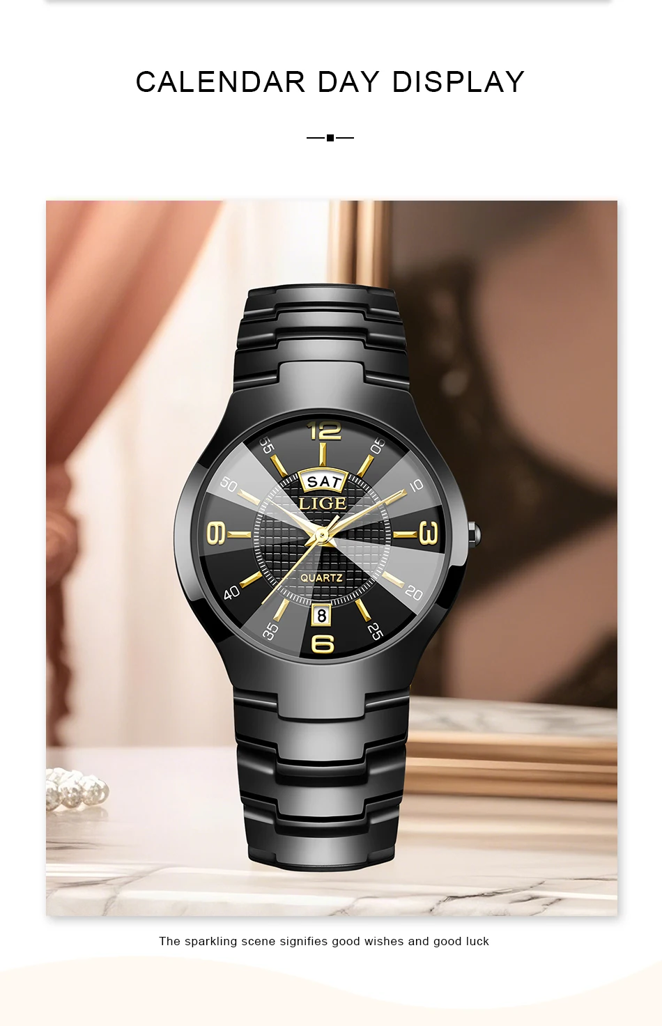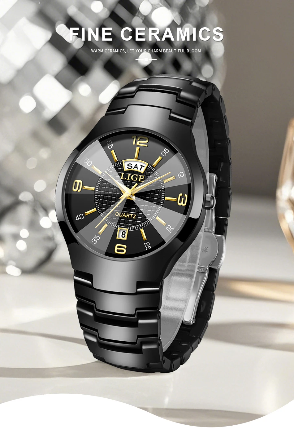 Reloj de cuarzo de cerámica de moda LIGE para mujer, reloj deportivo informal con fecha semanal, reloj creativo de acero resistente al agua para mujer