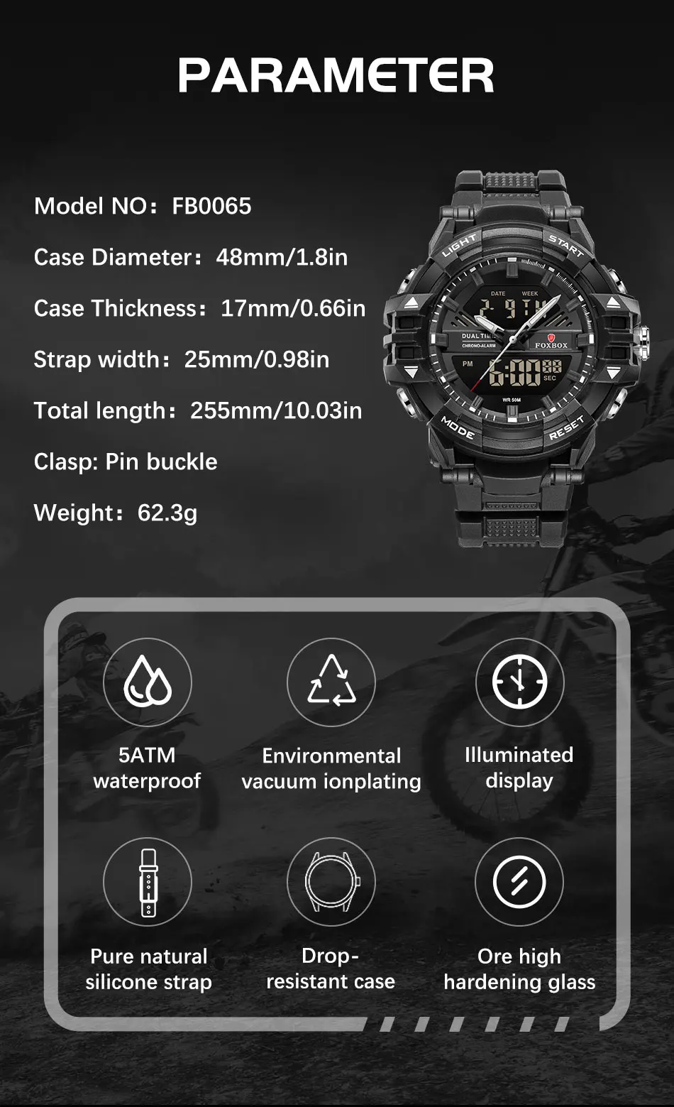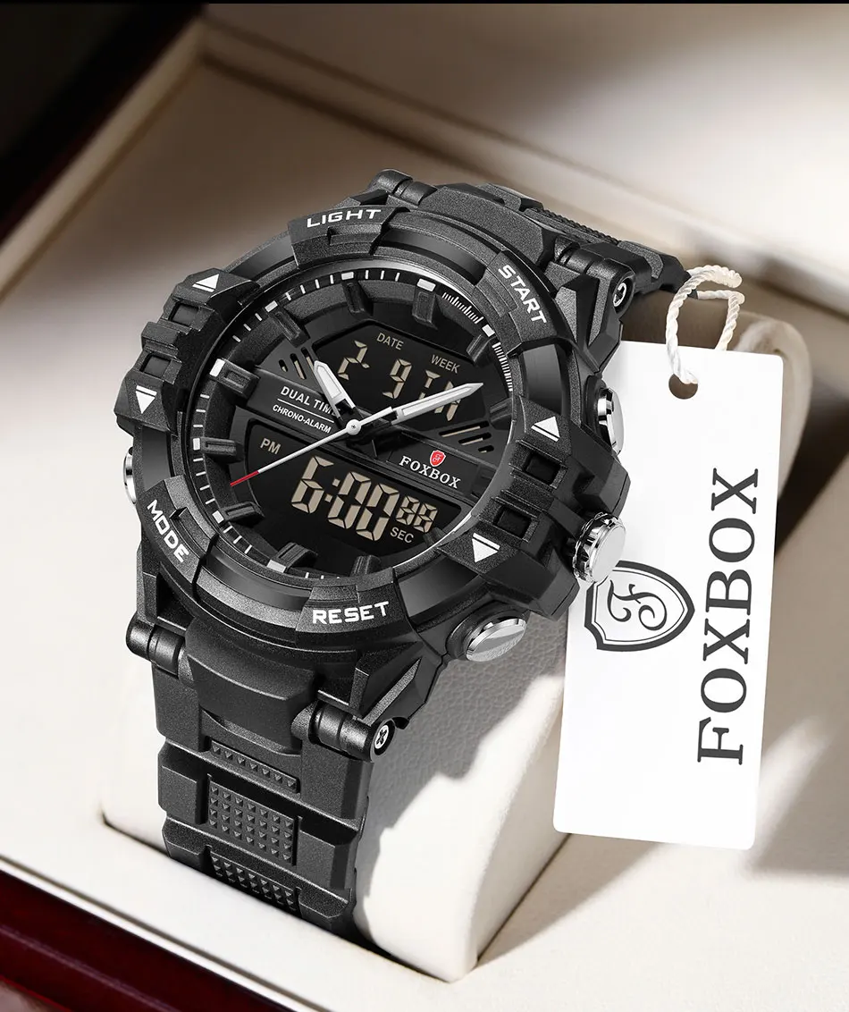 LIGE FOXBOX - Reloj electrónico deportivo informal de moda para hombre, con pantalla digital LED, resistente al agua hasta 50 m, alarma y fecha, con caja