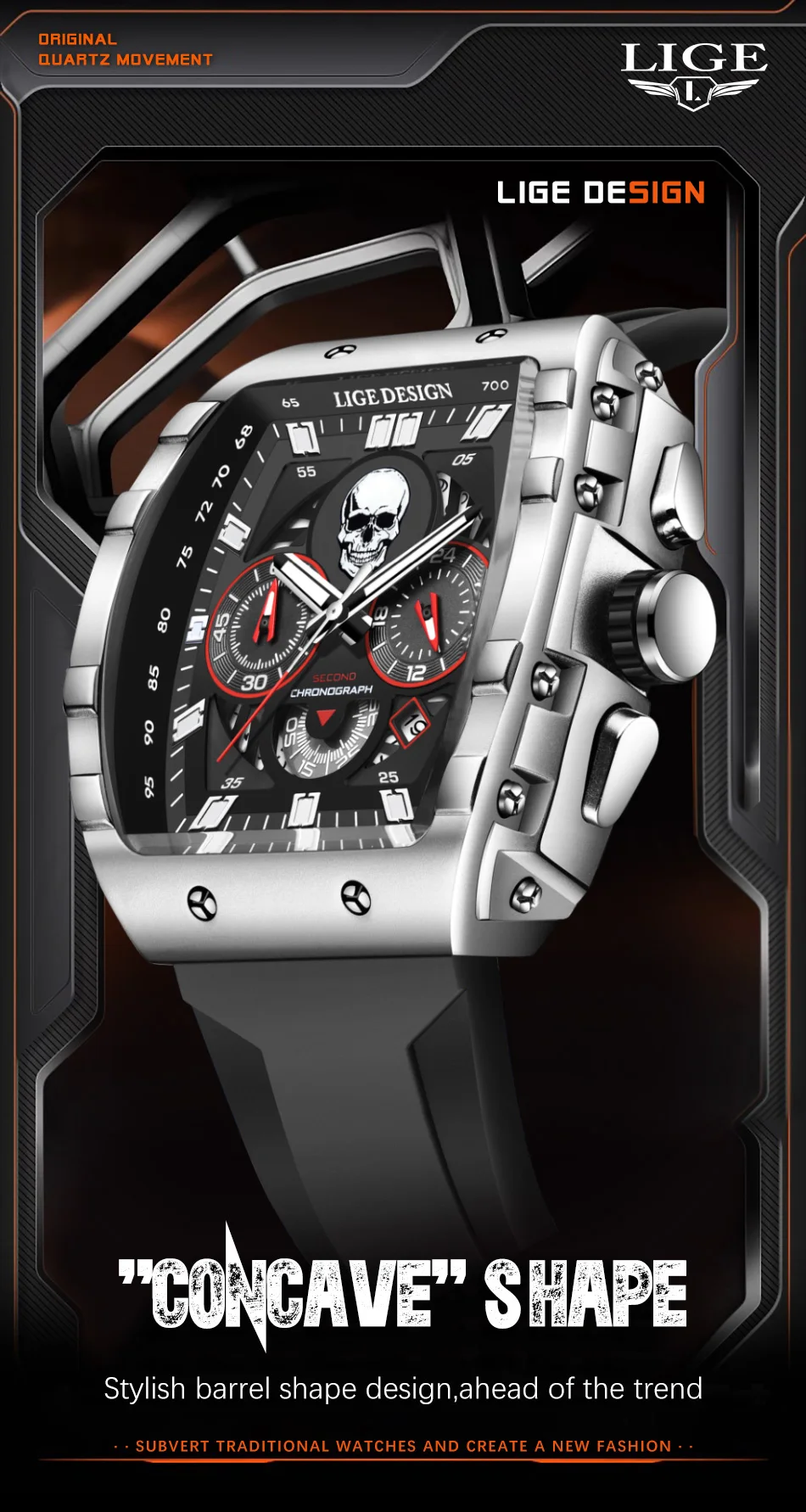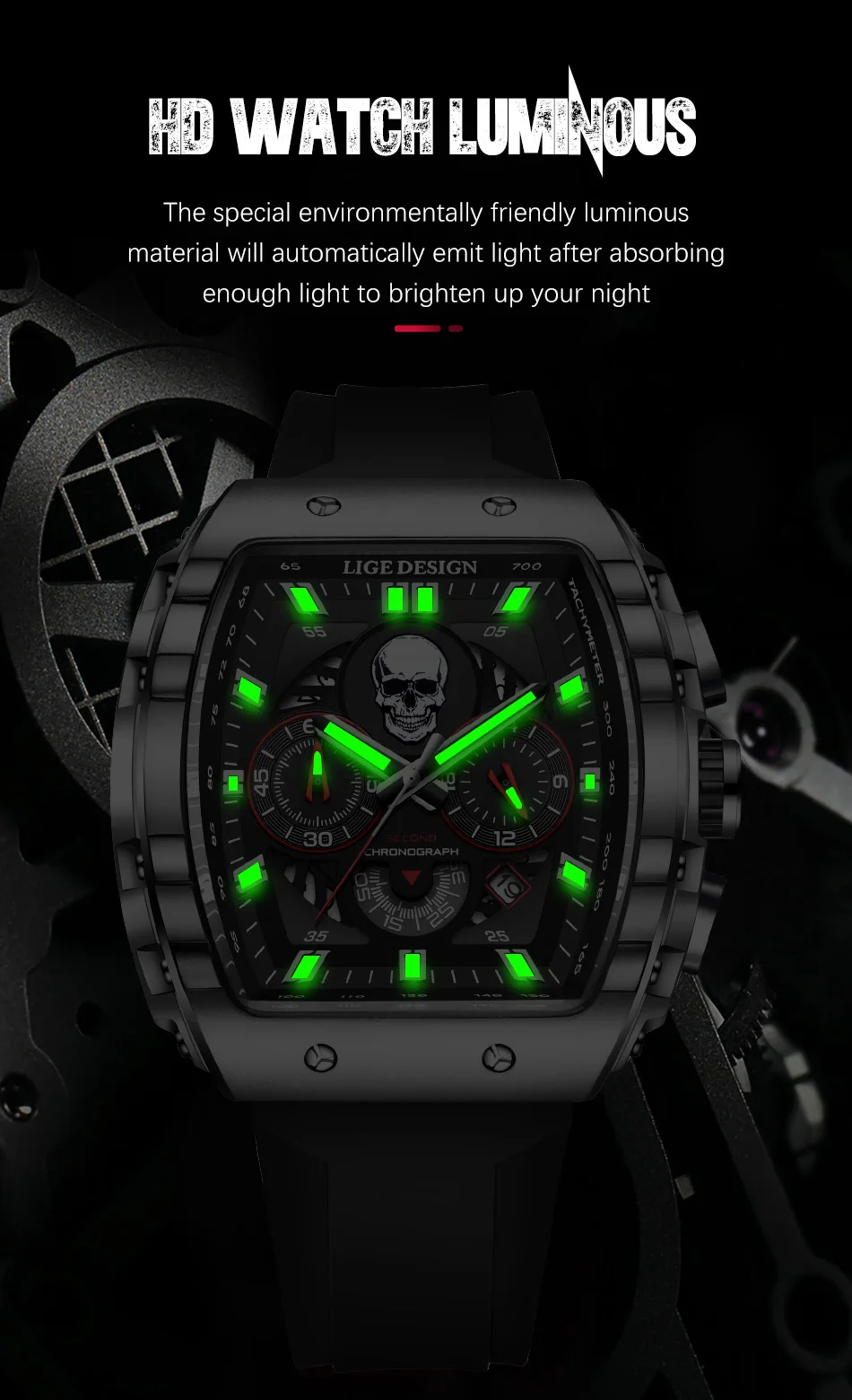 LIGE - Reloj de pulsera para hombre, de silicona, resistente al agua, estilo militar, deportivo, cuadrado, de cuarzo, cronógrafo, Masculino