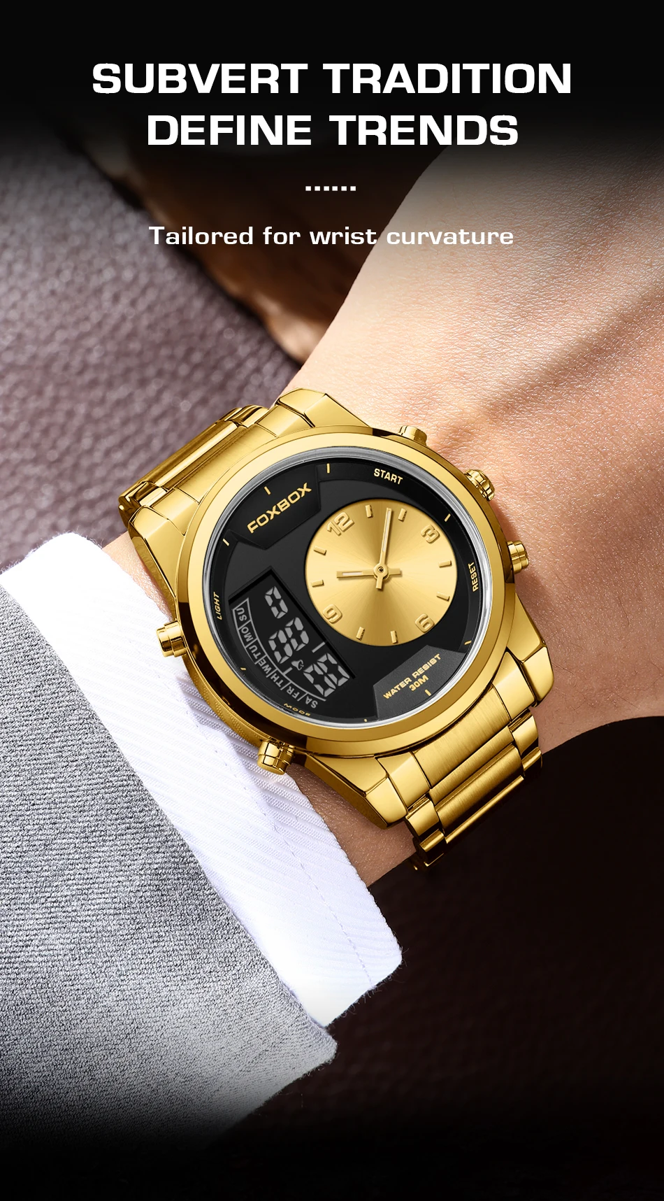 LIGE - Reloj digital de moda para hombre, deportivo, informal, resistente al agua, de cuarzo, cronógrafo de lujo, marca FOXBOX