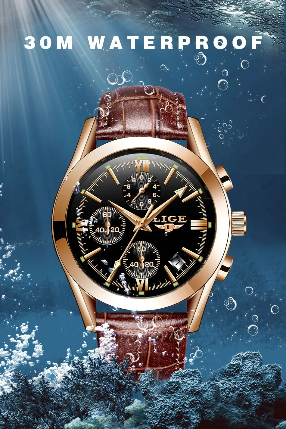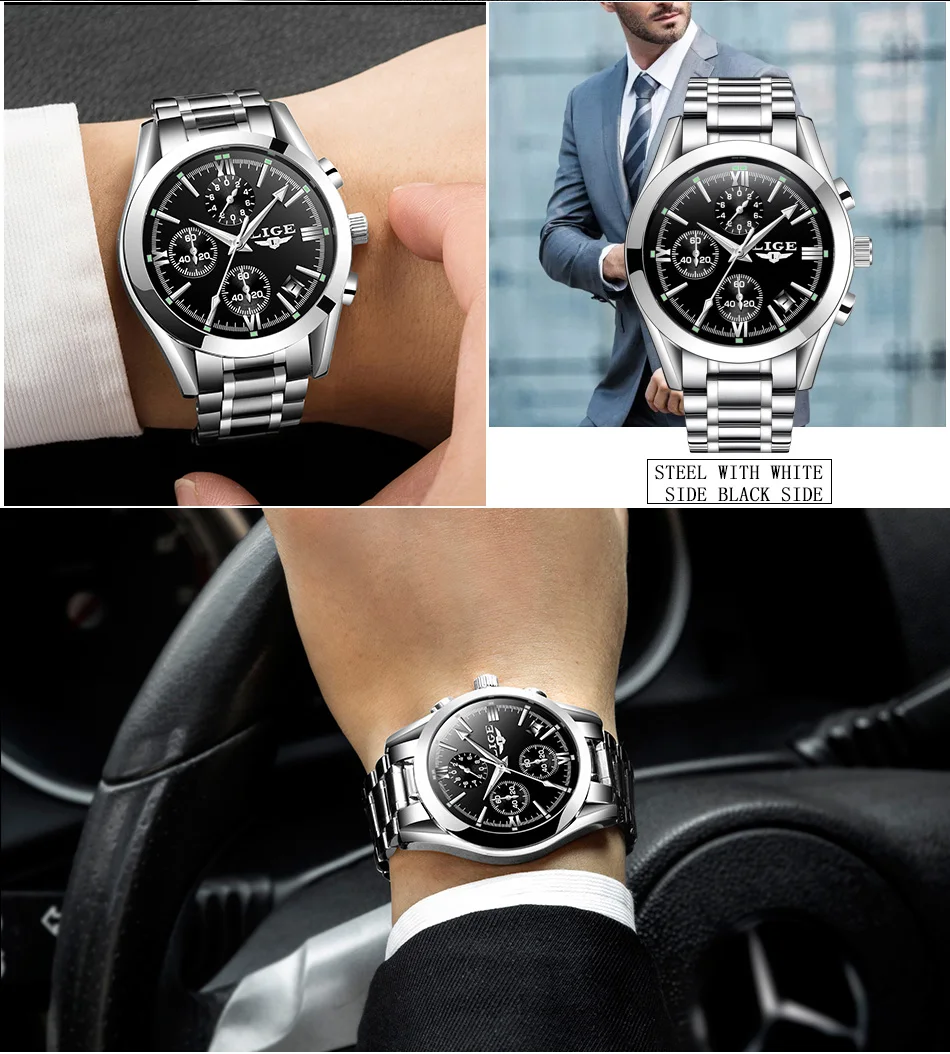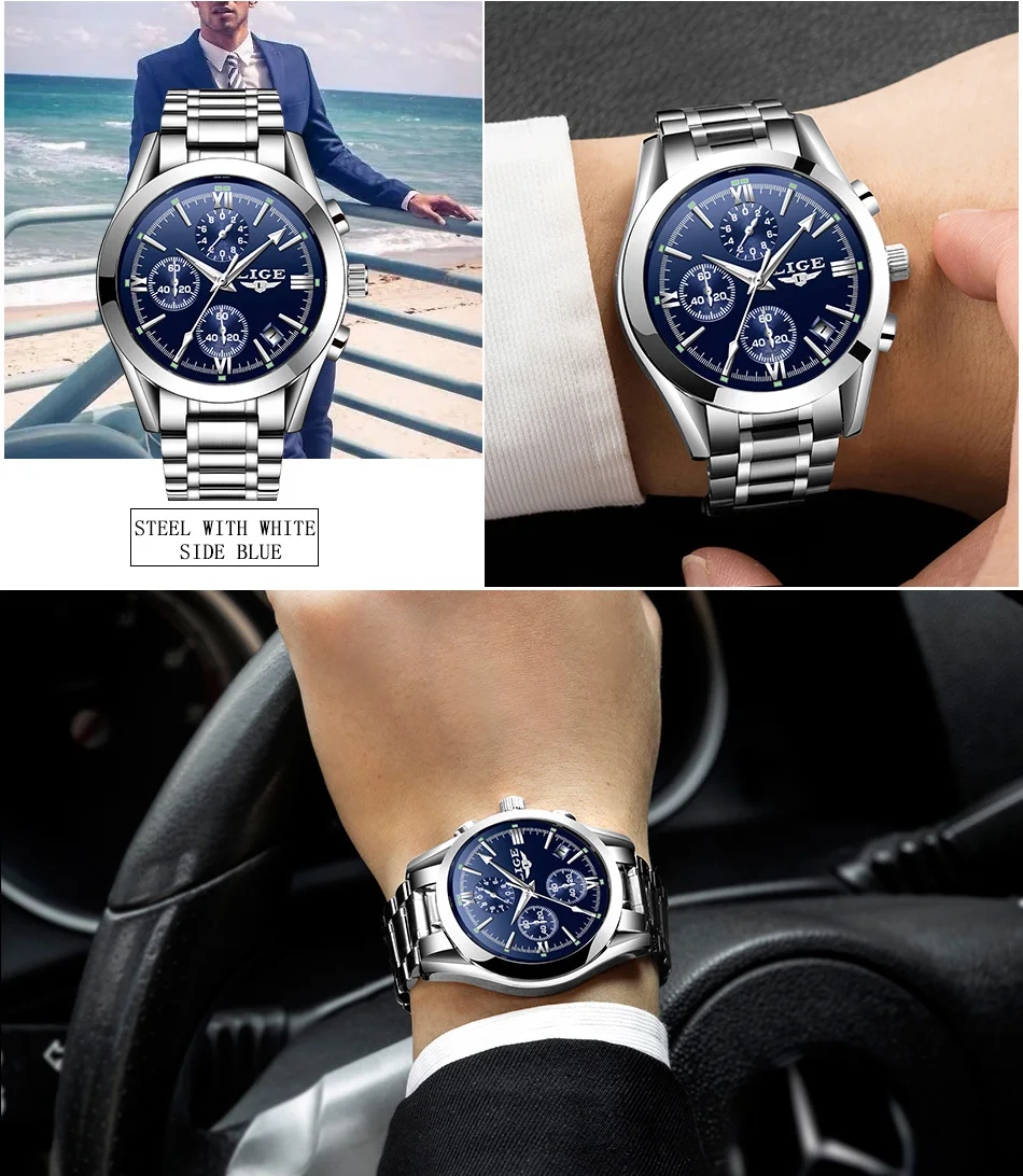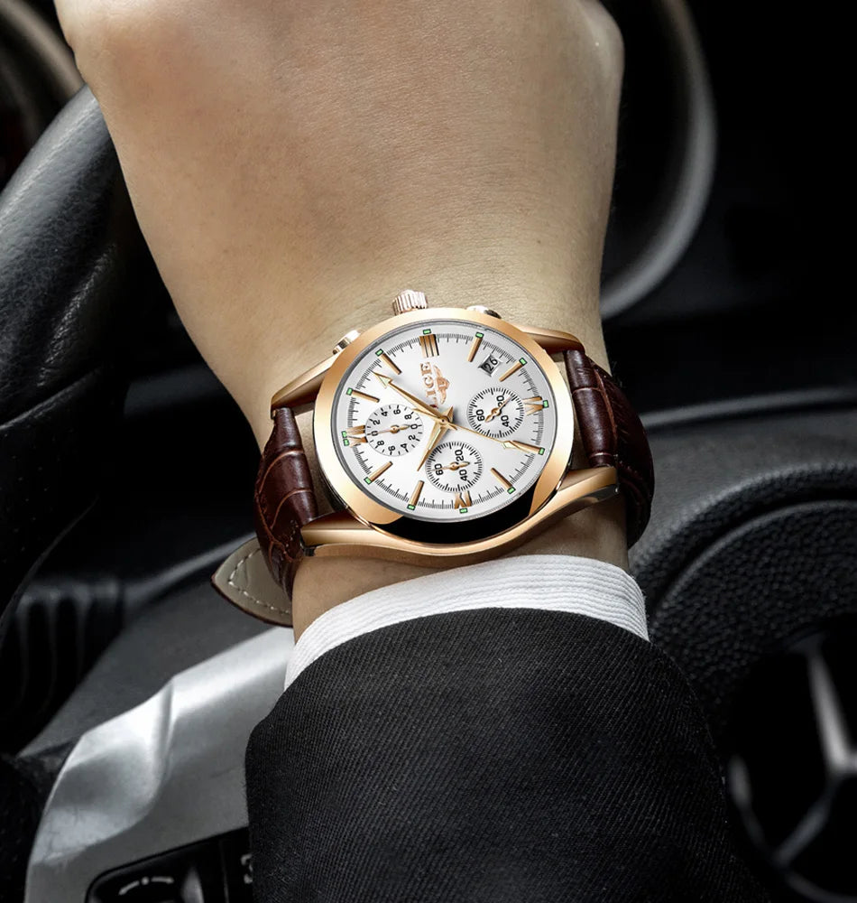 LIGE - Nuevos relojes de moda para hombre, marca superior de lujo, informal, militar, de cuero, de cuarzo, para negocios, resistente al agua, deportivo, cronógrafo