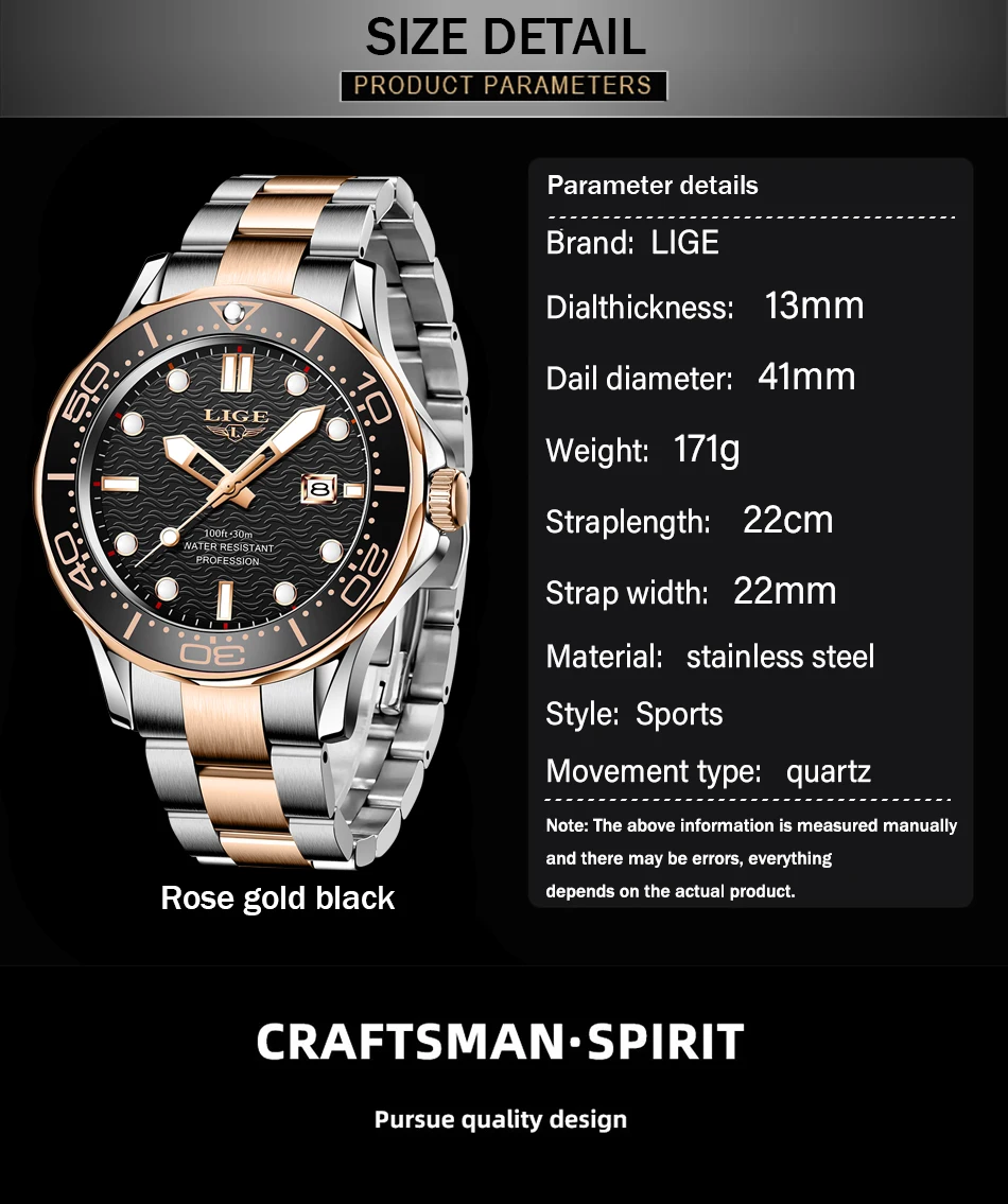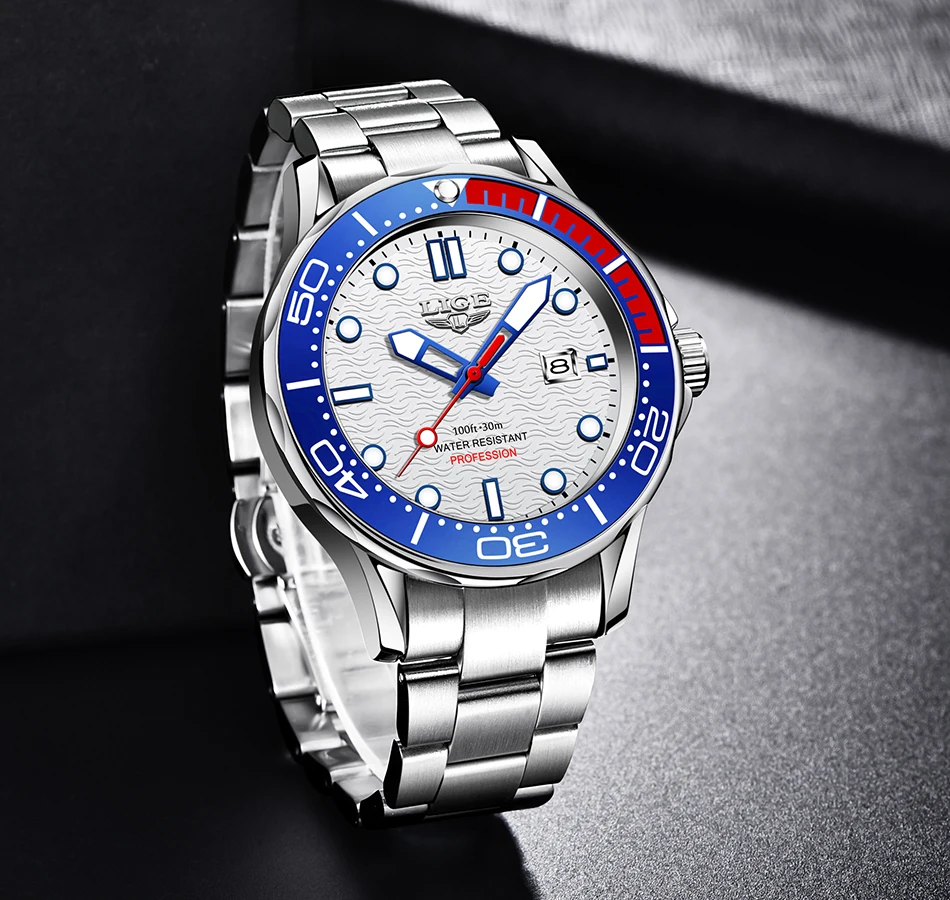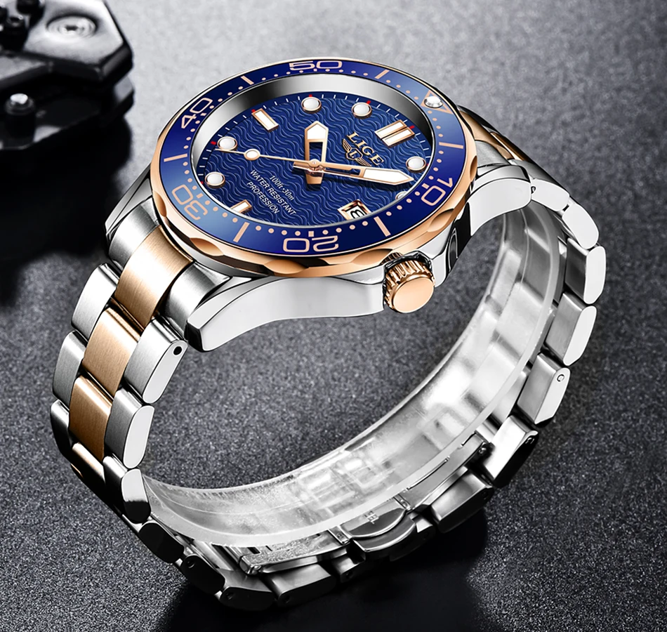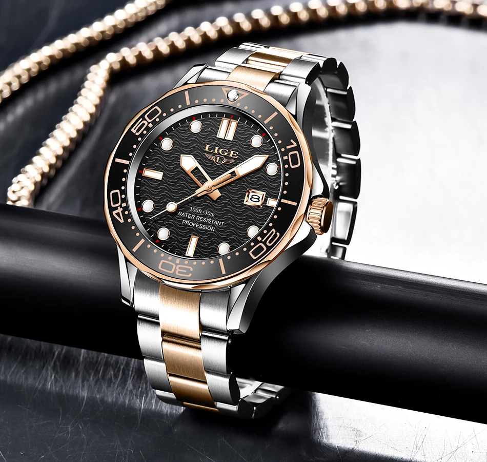 LIGE - Reloj de buceo de lujo para hombre, marca superior, resistente al agua hasta 3 ATM, con fecha, deportivo, de cuarzo, Masculino