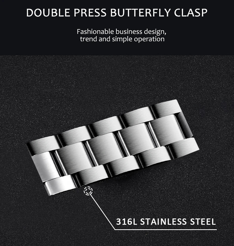 La caja del reloj es de acero inoxidable redonda y elegante, con una artesanía exquisita y una larga vida útil.