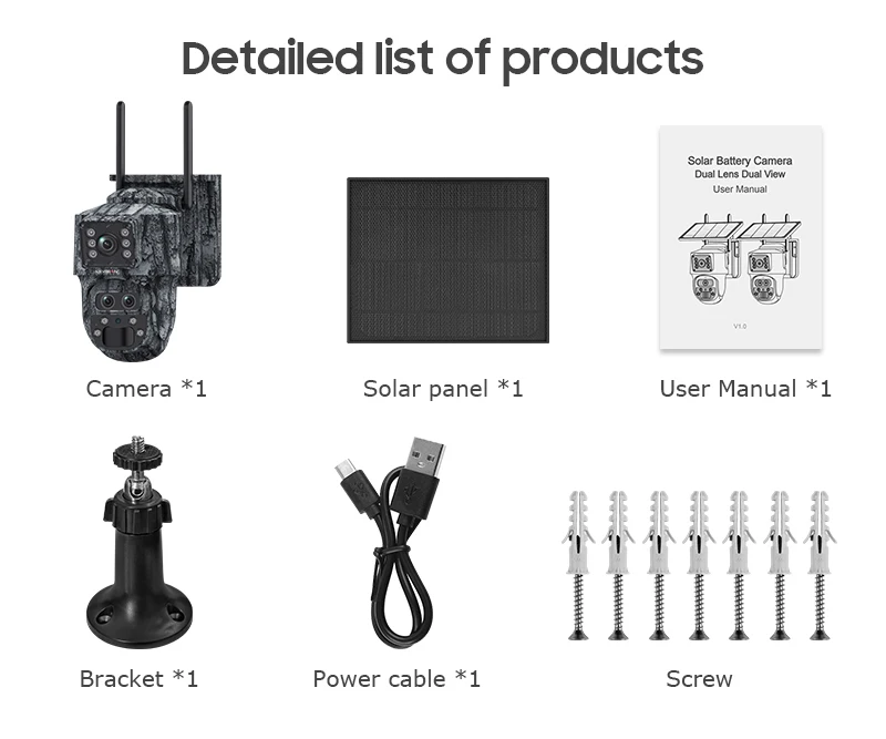 • Alimentación continua: El panel solar de alta eficiencia de 5 W (incluye cable de extensión de 3 metros) y la batería integrada de gran capacidad de 7800 mAh garantizan un funcionamiento prolongado incluso en días lluviosos.