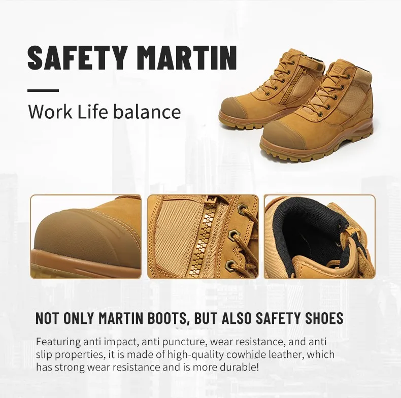 Botas de seguridad de lujo de caña alta en piel de vacuno para hombre, con puntera de acero, protección antiimpactos y antipinchazos, resistentes al desgaste.