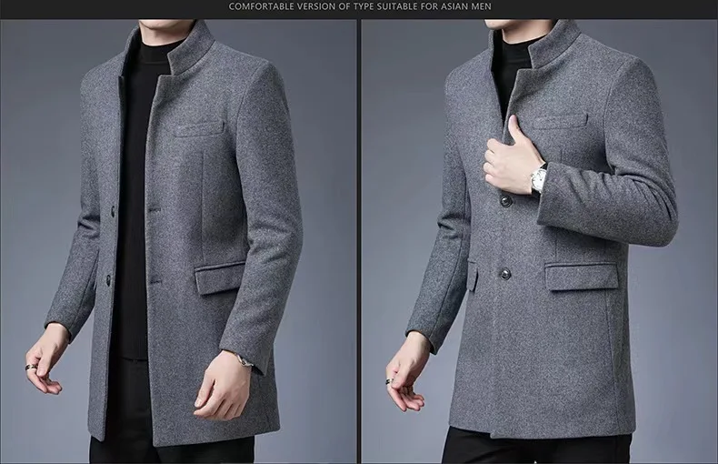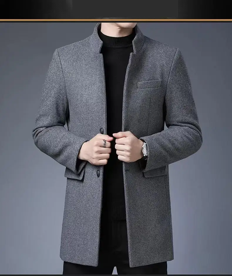 Gabardina de lana sintética para hombre, tallas M-4XL, corte ajustado, estilo urbano informal, ideal para otoño.