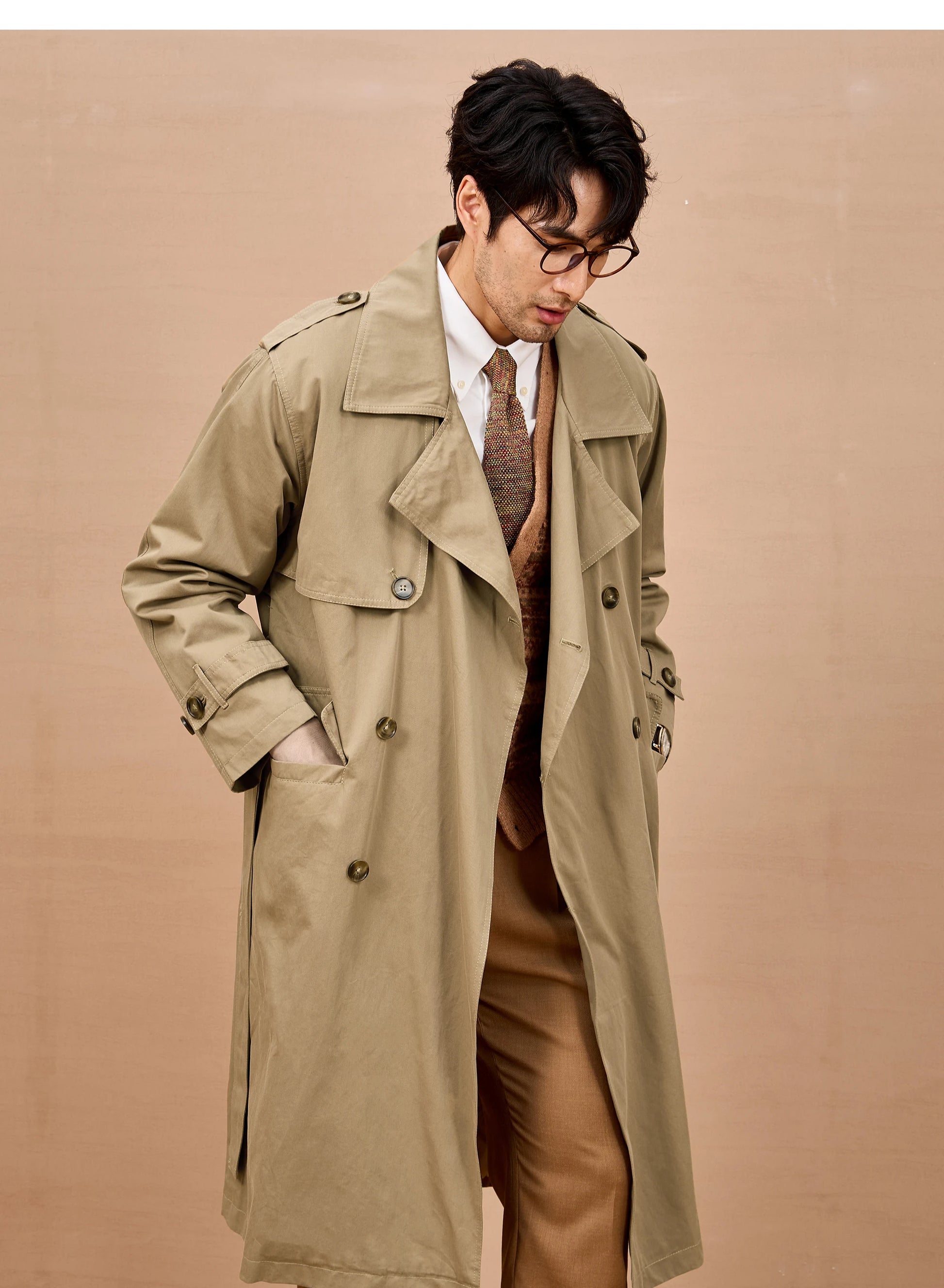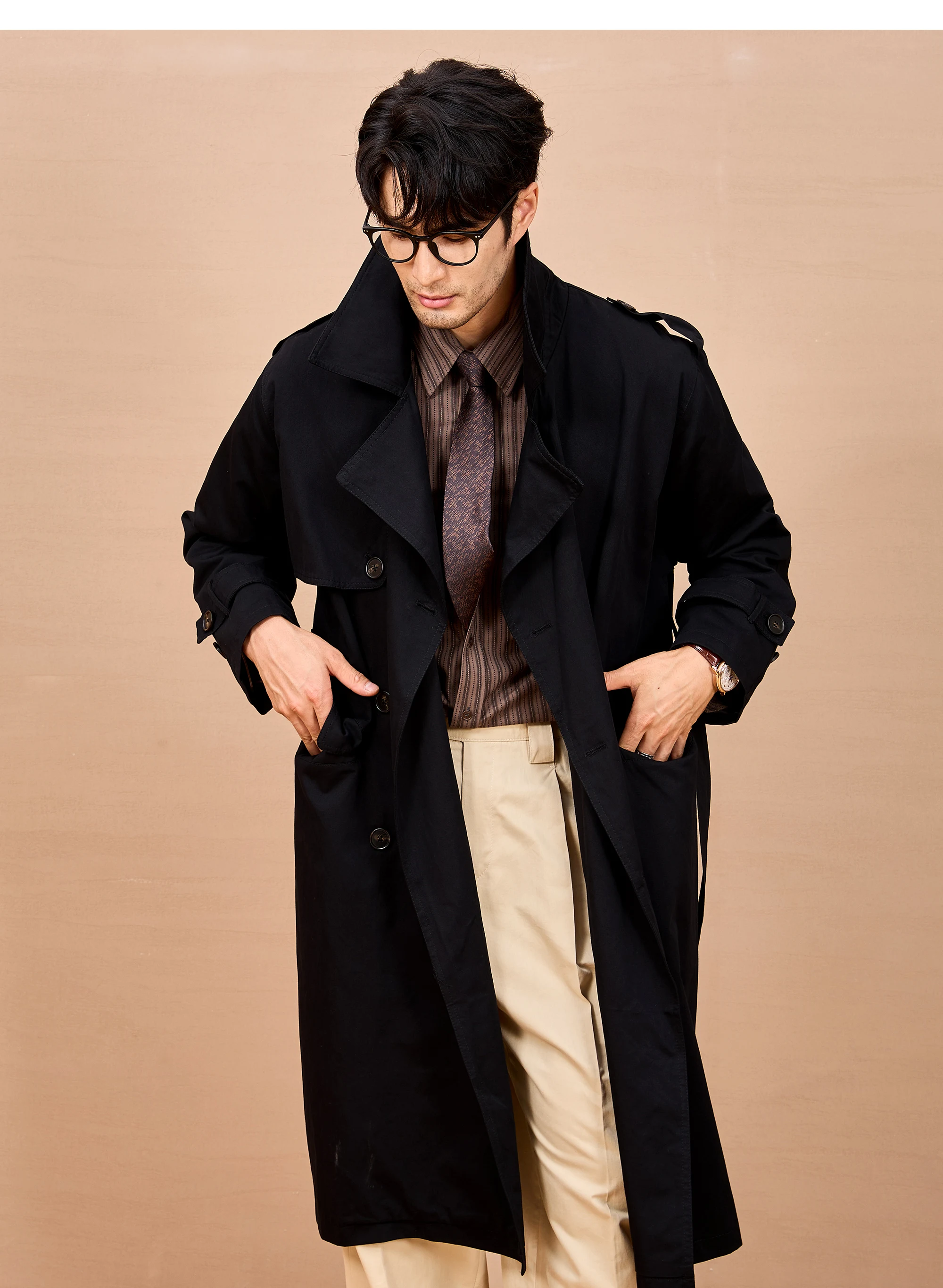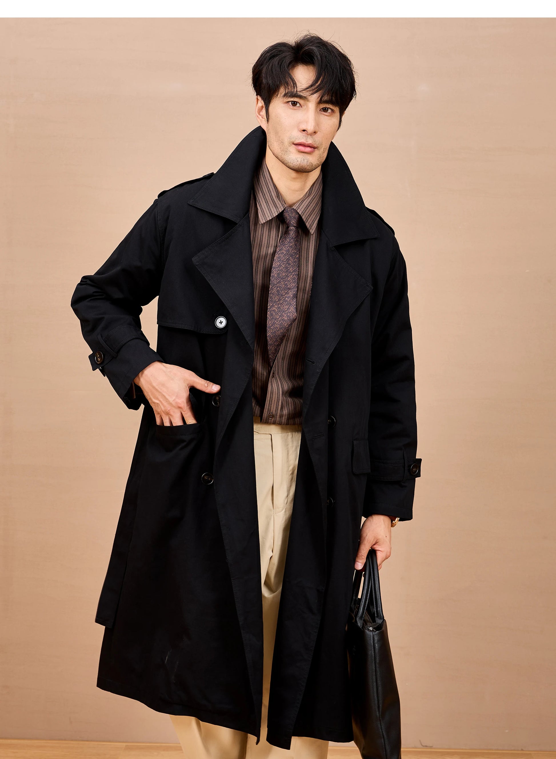 Gabardina larga negra y caqui de Mauroicardi para hombre, primavera/otoño, con hombreras, doble botonadura, estilo británico elegante, moda 2025
