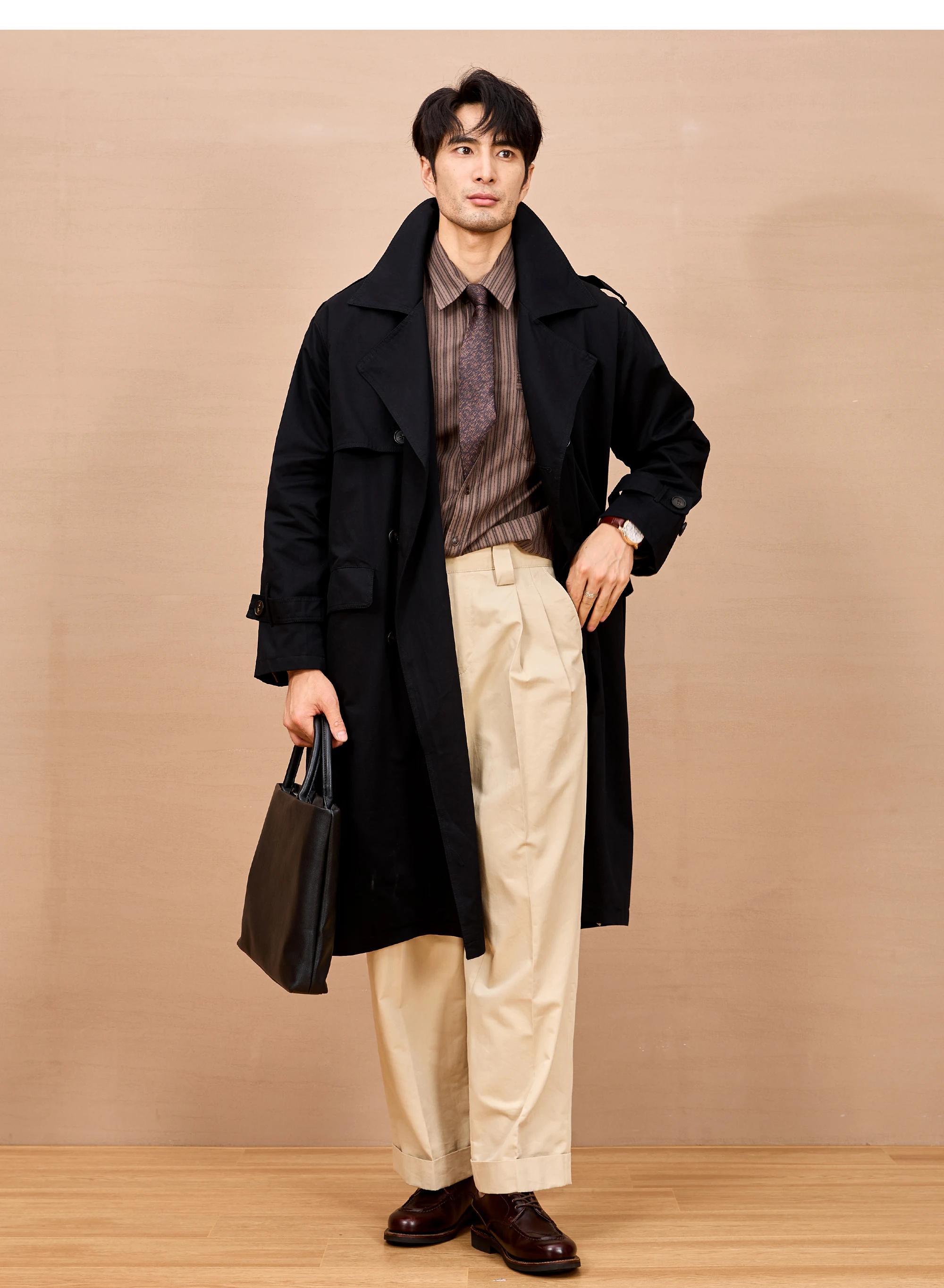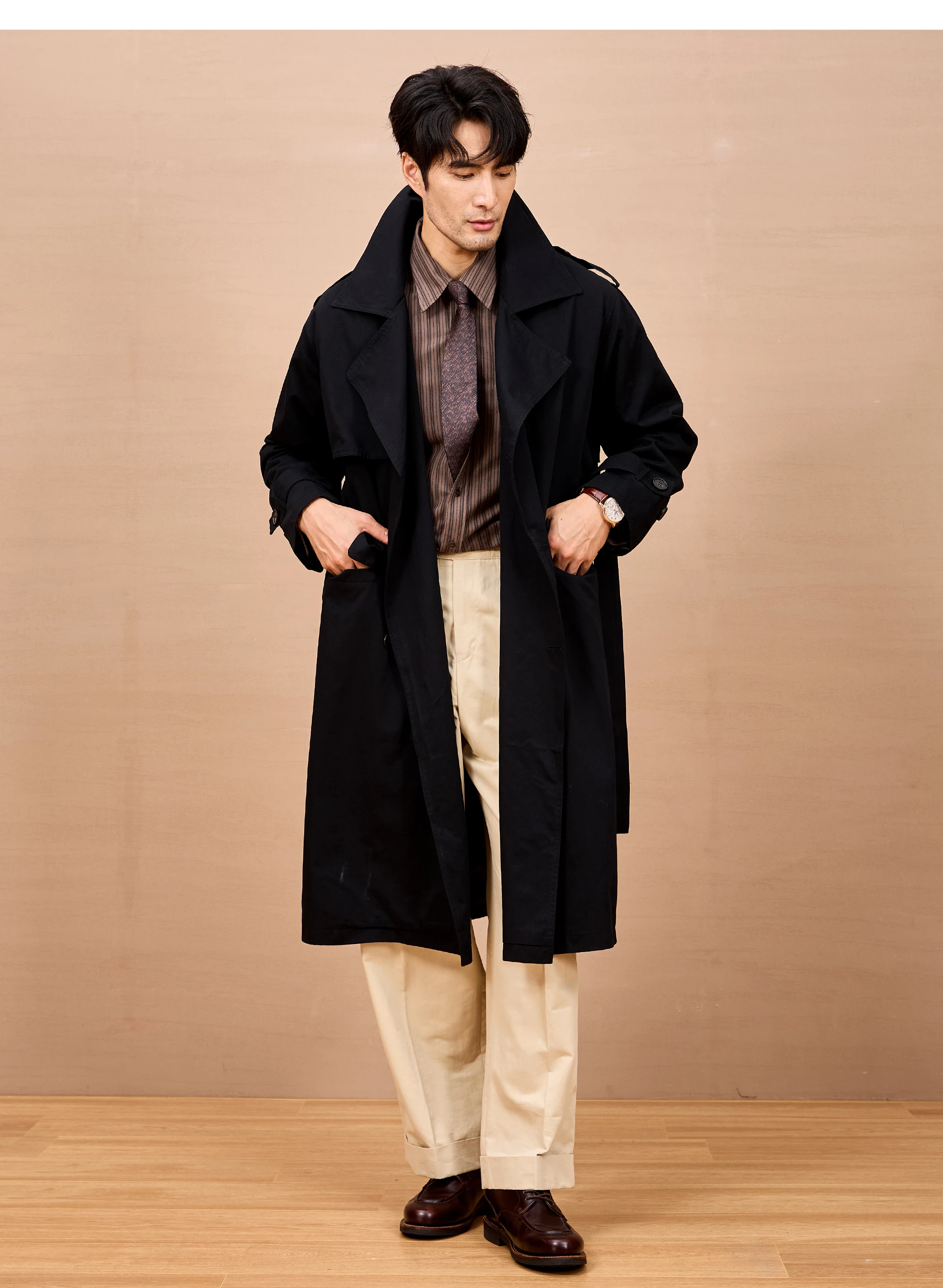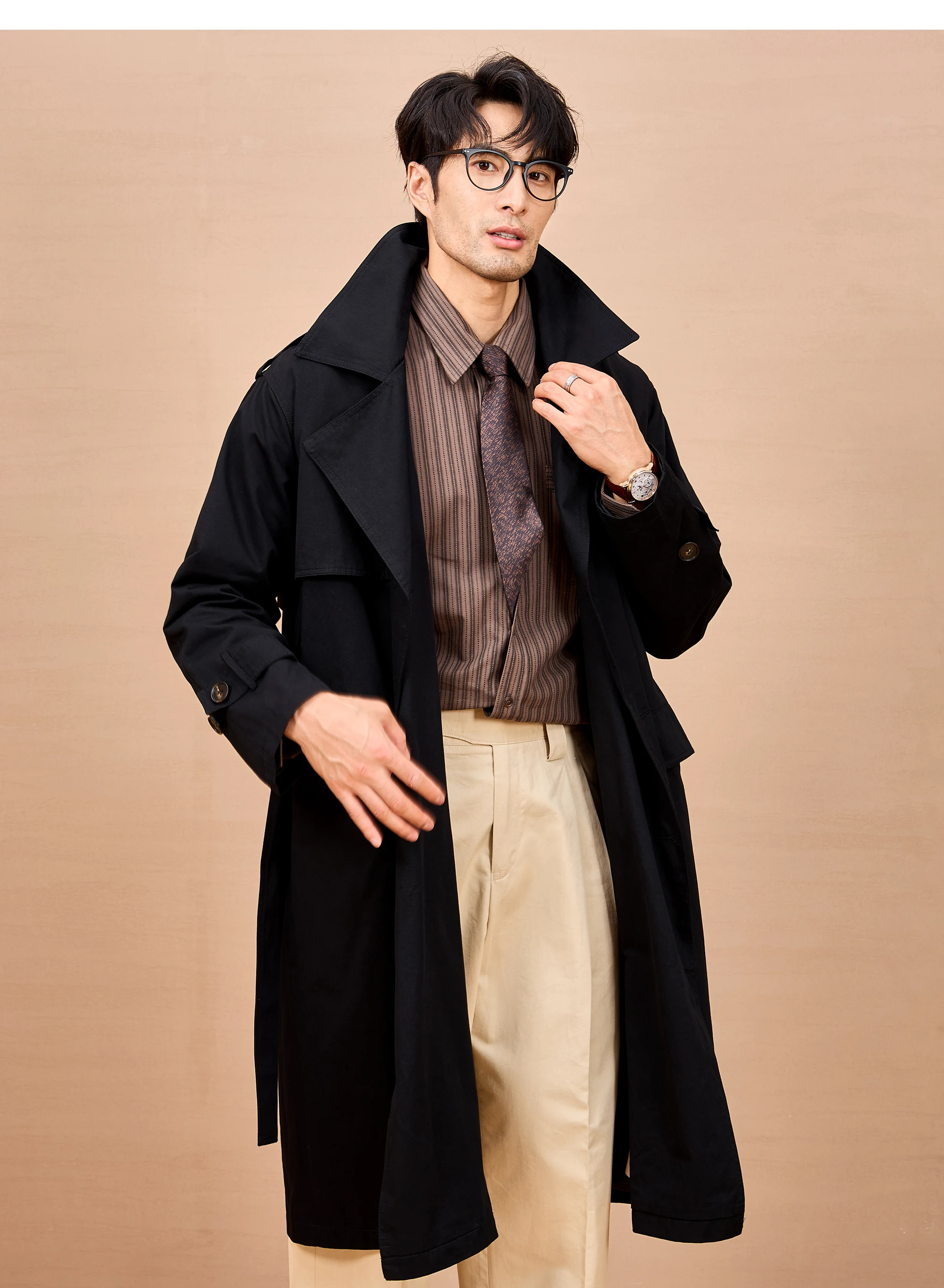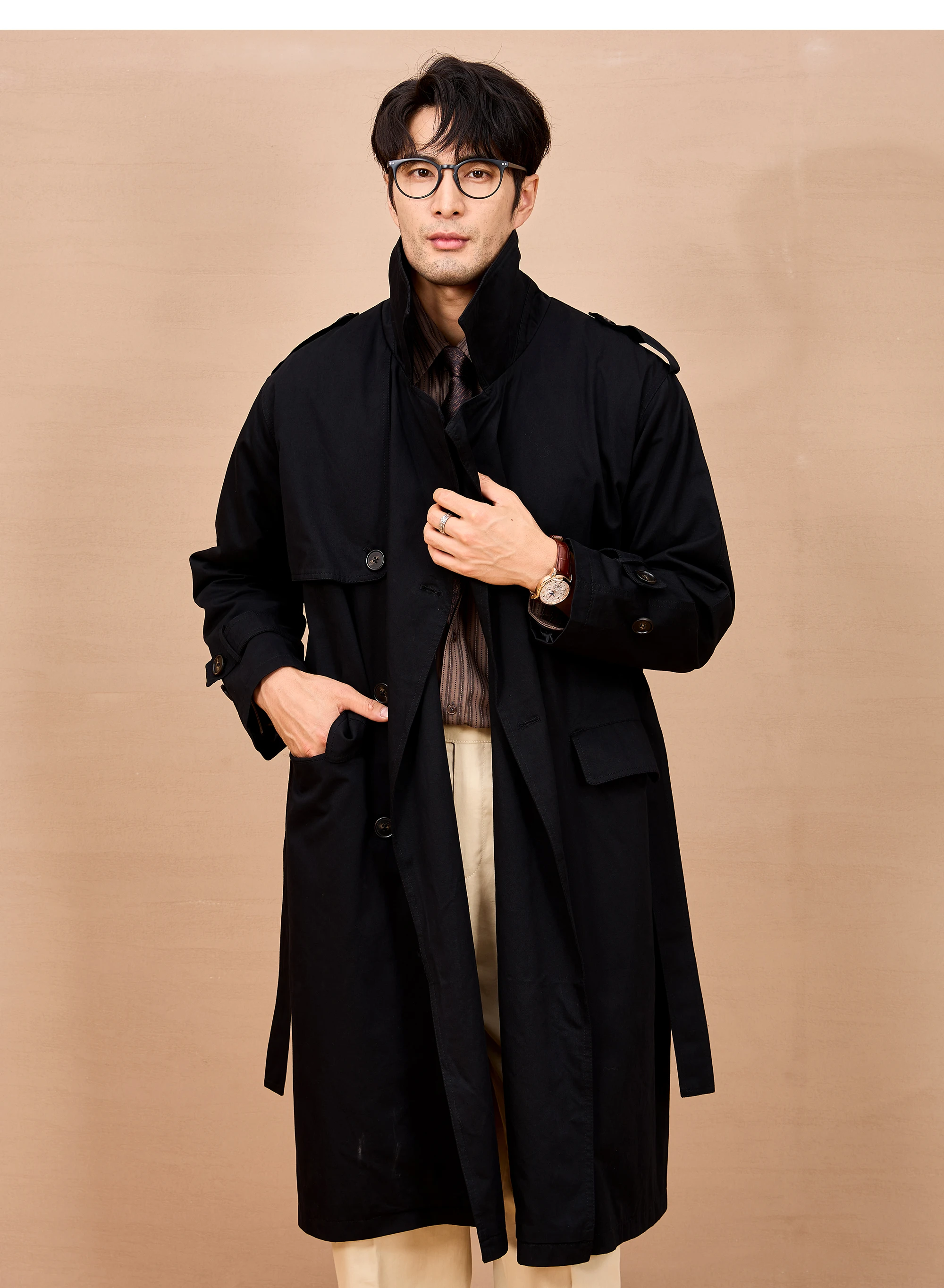 Gabardina larga negra y caqui de Mauroicardi para hombre, primavera/otoño, con hombreras, doble botonadura, estilo británico elegante, moda 2025