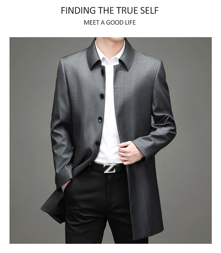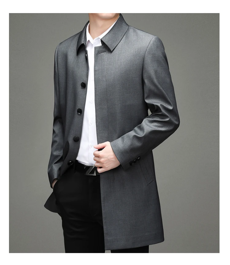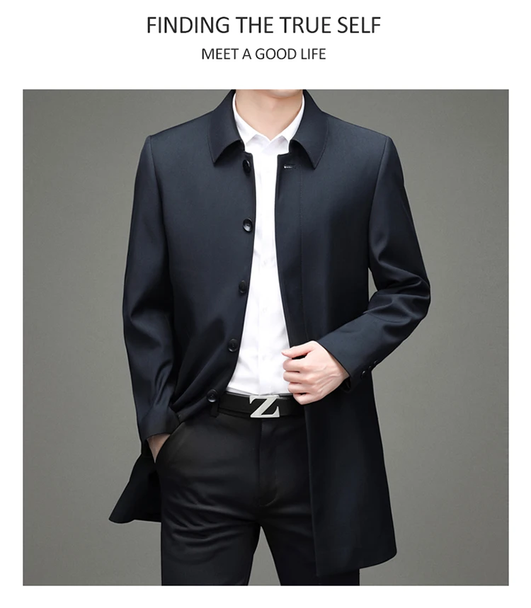 Gabardina coreana Maxbarley para hombre, otoño 2025, estilo casual de negocios, cortavientos, abrigo largo de estilo urbano.