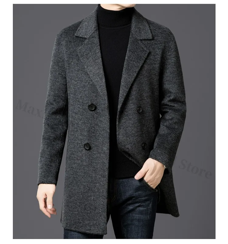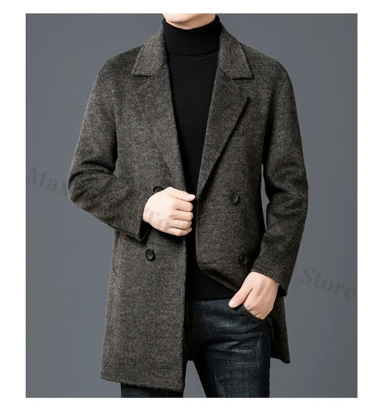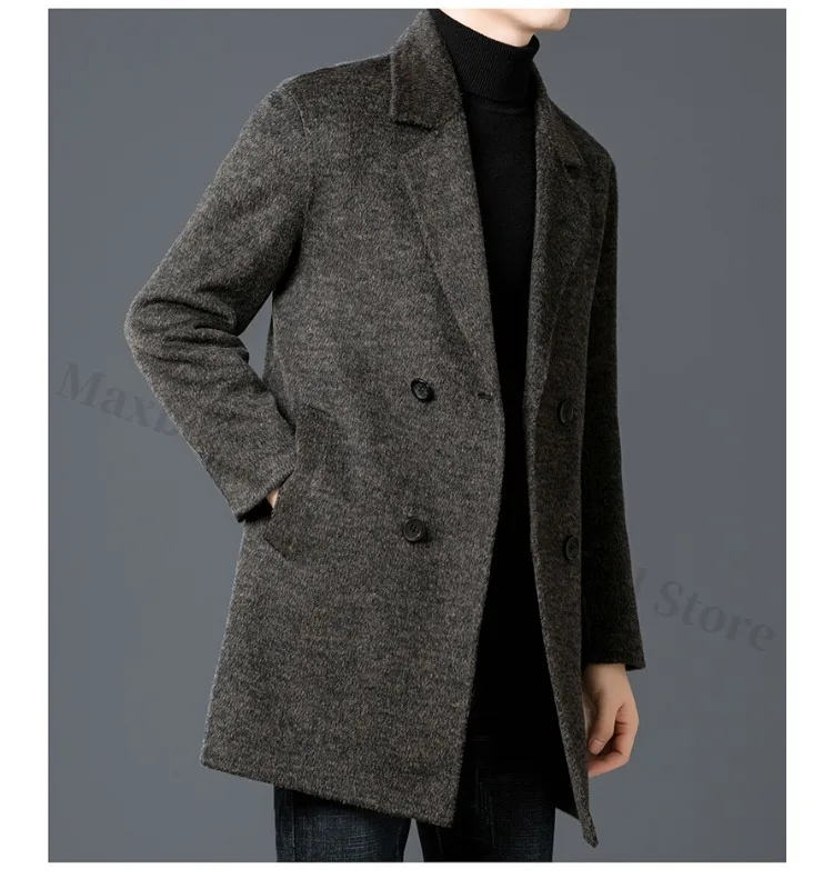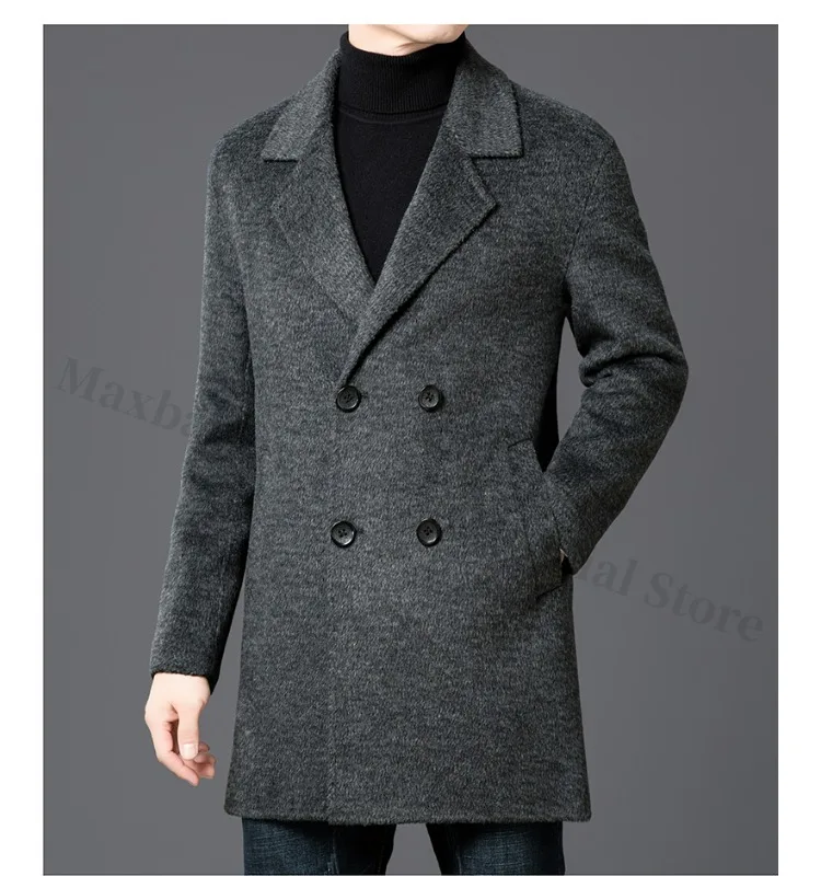 Chaqueta de lana de lujo para hombre Maxbarley, cuello de traje, abrigo ligero y cálido para trabajo, viajes informales, resistente al frío, mezcla de lana para invierno