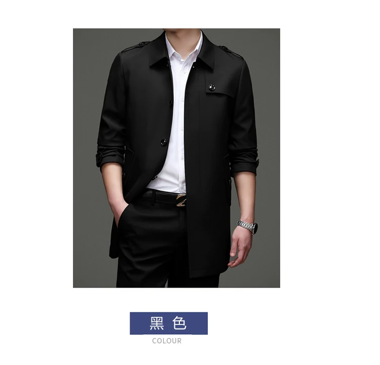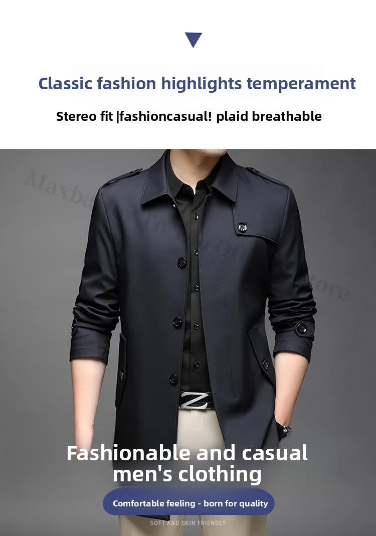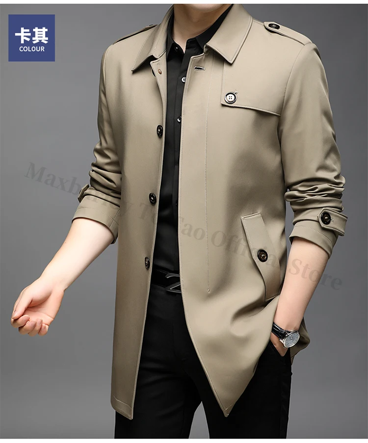 Abrigo tipo gabardina Maxbarley para hombre, estilo coreano, ligero, de lujo, de un solo botón, chaqueta larga cortavientos, colección primavera-otoño 2025, marca, con solapa.