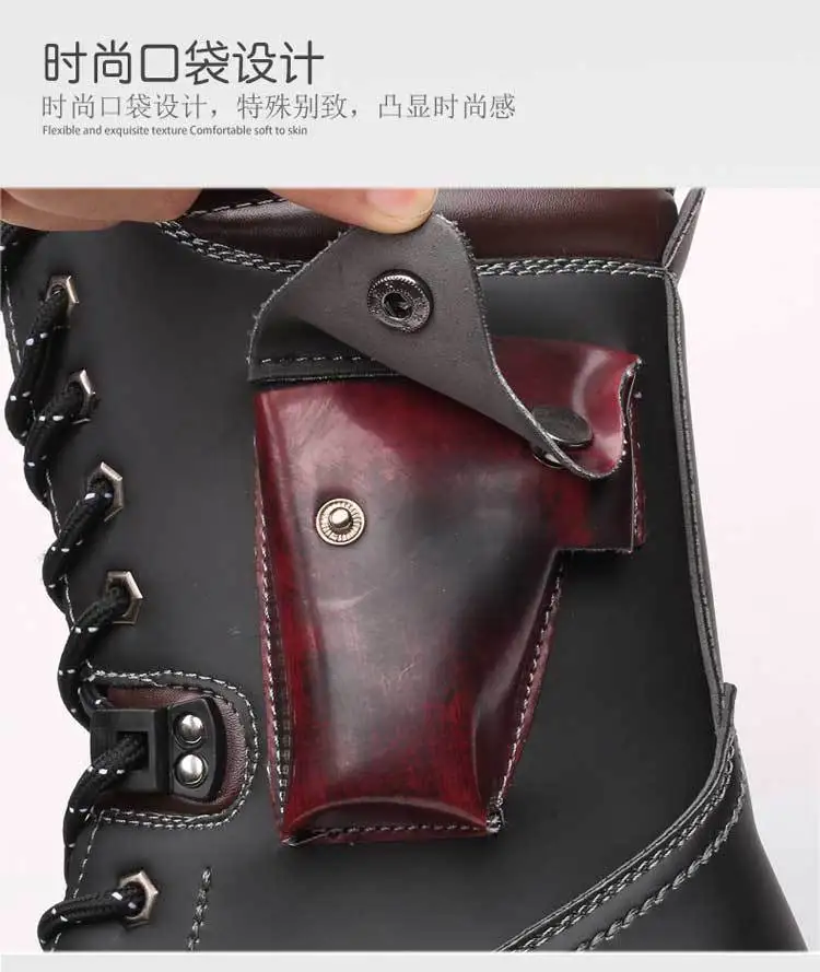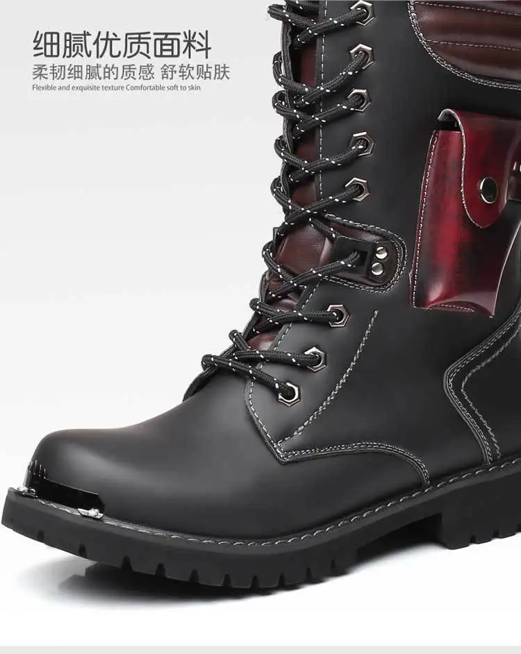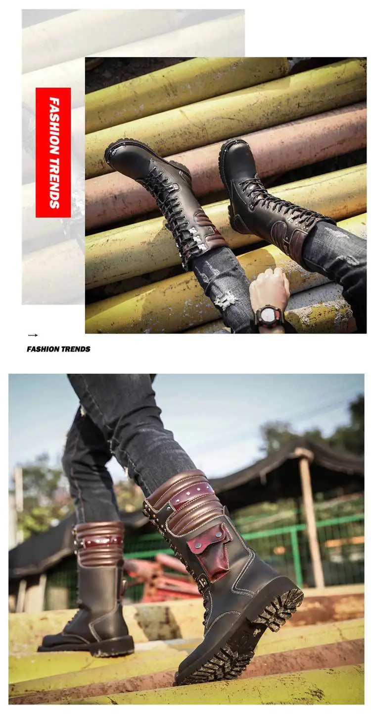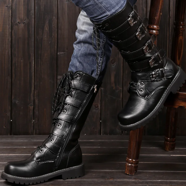 Botas altas de cuero para hombre, estilo motero, de invierno, estilo gótico punk, para hombre, estilo militar informal, para uso exterior.