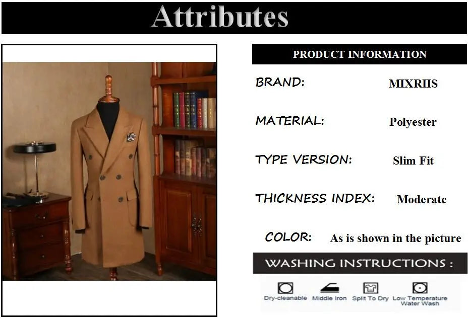 Abrigo largo de lana para hombre, cruzado, con solapa de pico y seis botones. Chaqueta larga de traje, confeccionada a medida. Abrigo largo marrón.