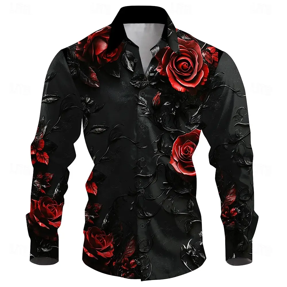 Camisa 3D de manga larga para hombre, estilo casual urbano, suave y cómoda, con un nuevo diseño tridimensional.