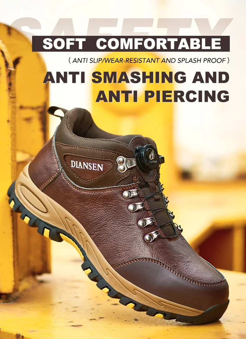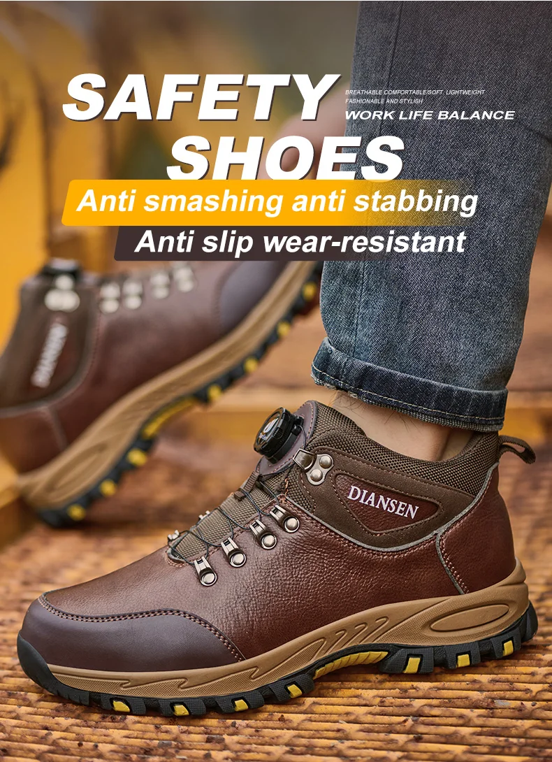Zapatos de seguridad para hombre con botón giratorio, puntera de acero, zapatillas de trabajo indestructibles, botas de trabajo a prueba de perforaciones, calzado para hombre.