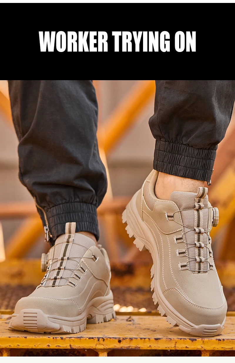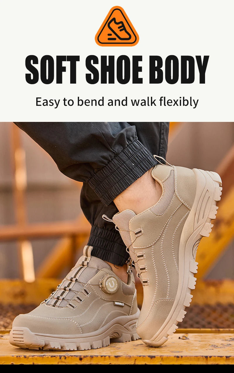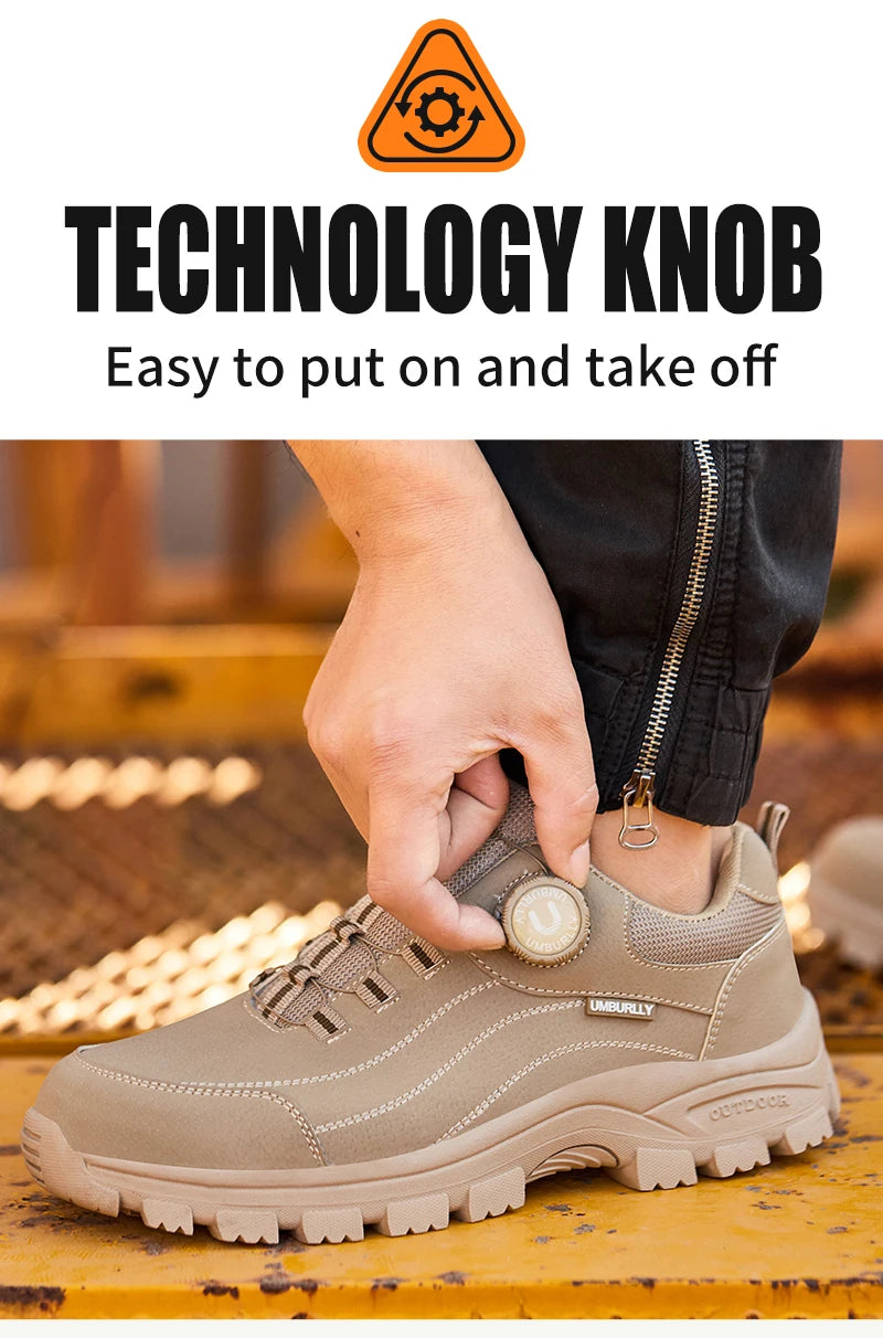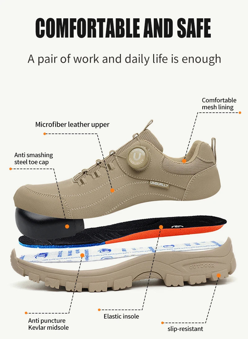 Calzado de seguridad para hombre con diseño de botones, puntera de acero, resistente a la compresión y suela antideslizante para trabajo en exteriores y talleres.