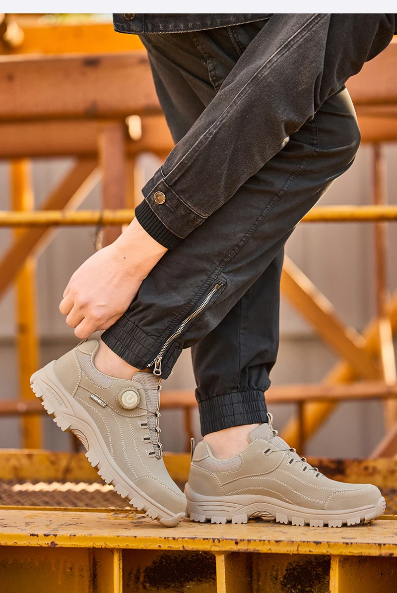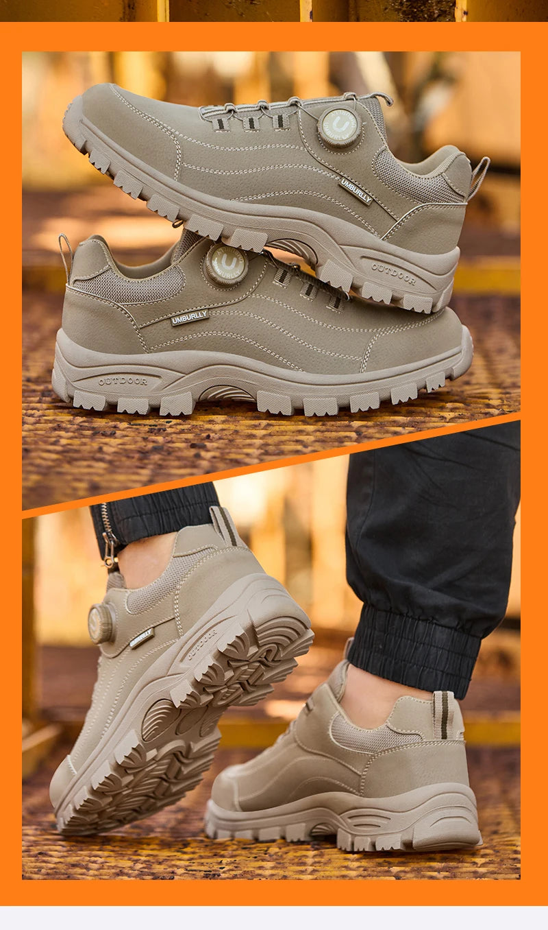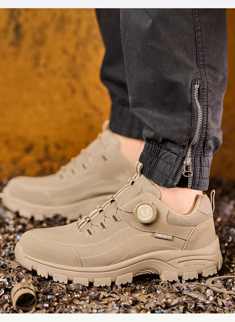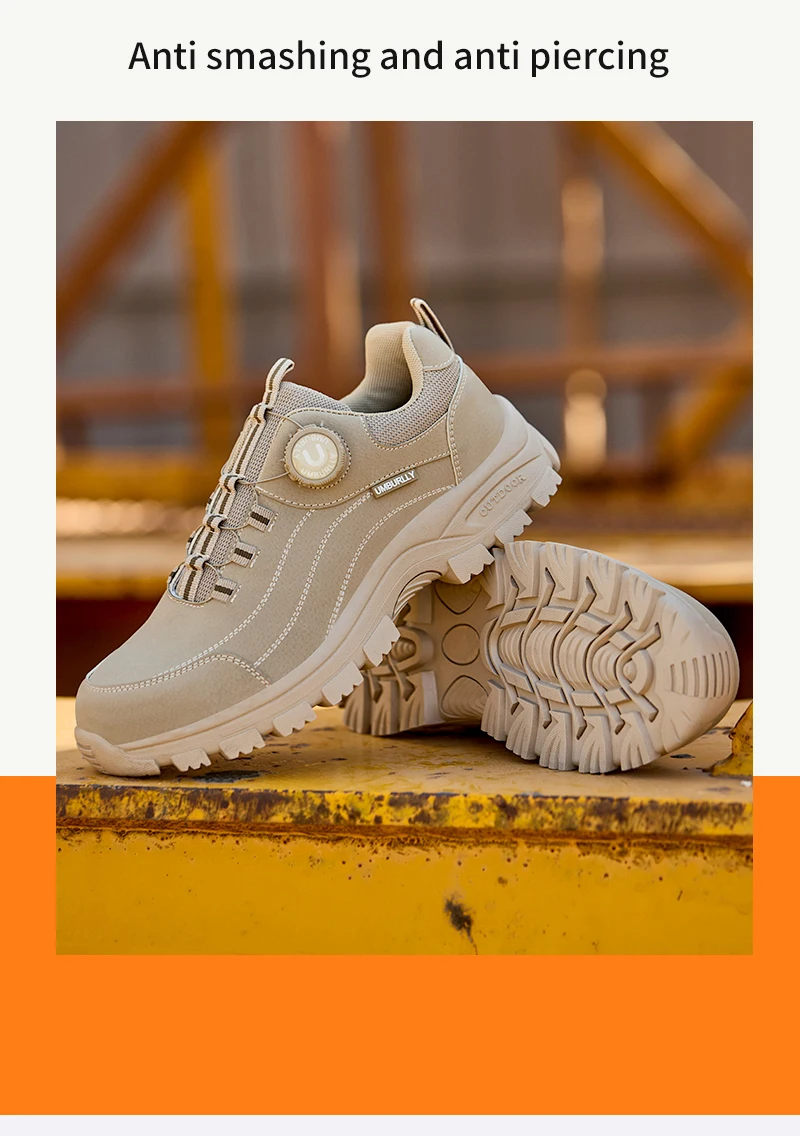 Calzado de seguridad para hombre con diseño de botones, puntera de acero, resistente a la compresión y suela antideslizante para trabajo en exteriores y talleres.