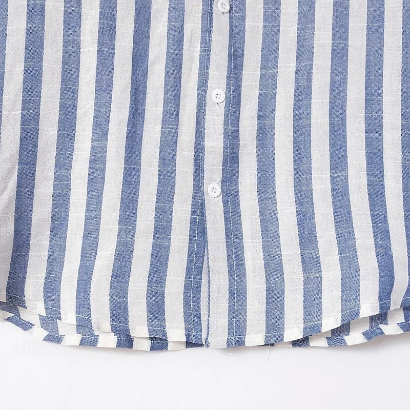 Camisas de lino para hombre, camisas de verano, rayas, estilo casual de negocios, para uso diario, amarillas, rosas, azul marino, verdes, manga larga, solapa, talla 6XL