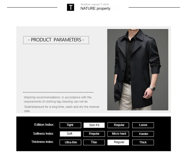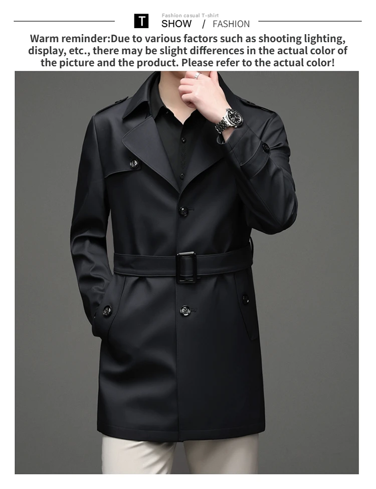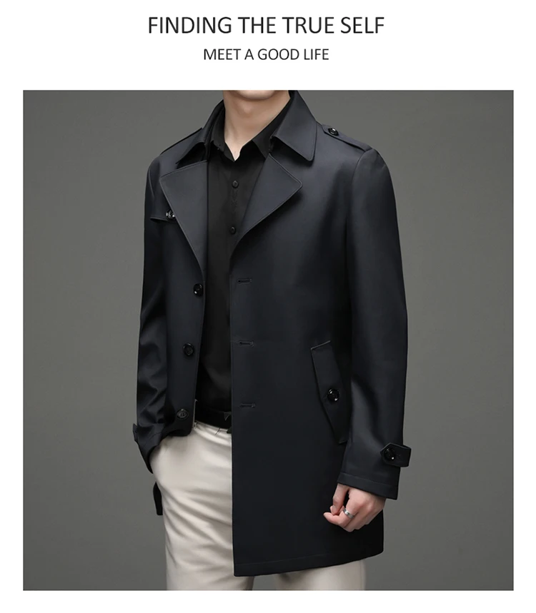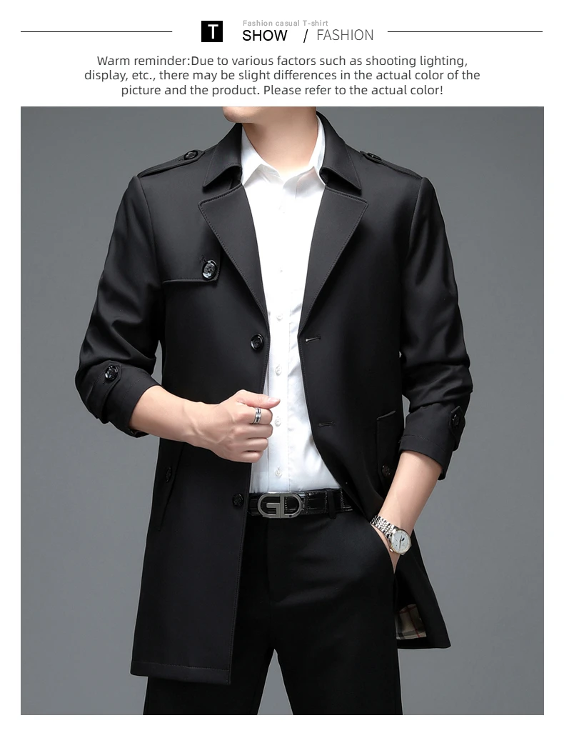 Gabardina de hombre, estilo casual o de negocios, ideal para otoño. Chaqueta larga estilo británico, versátil y con cuello de traje. Nueva prenda urbana.