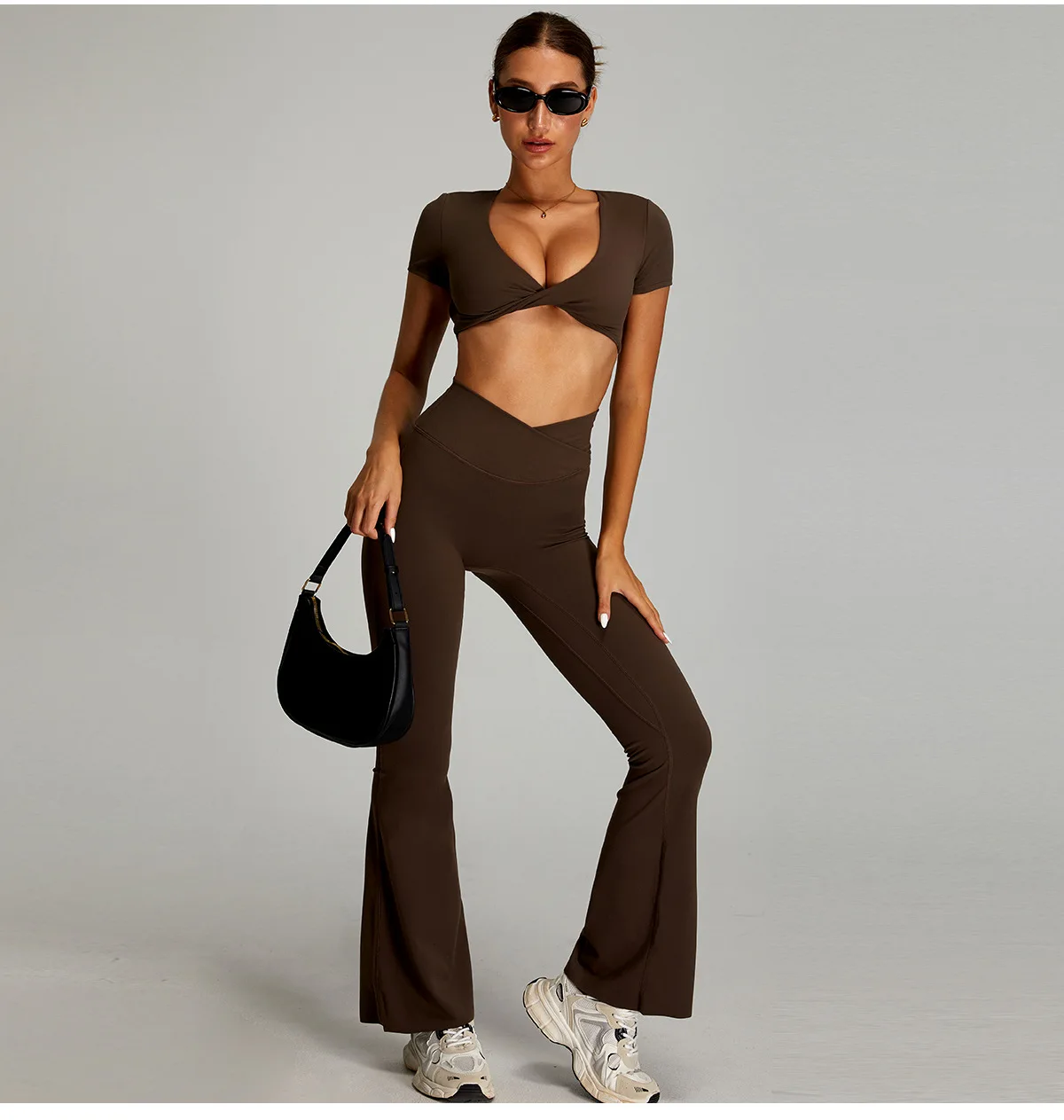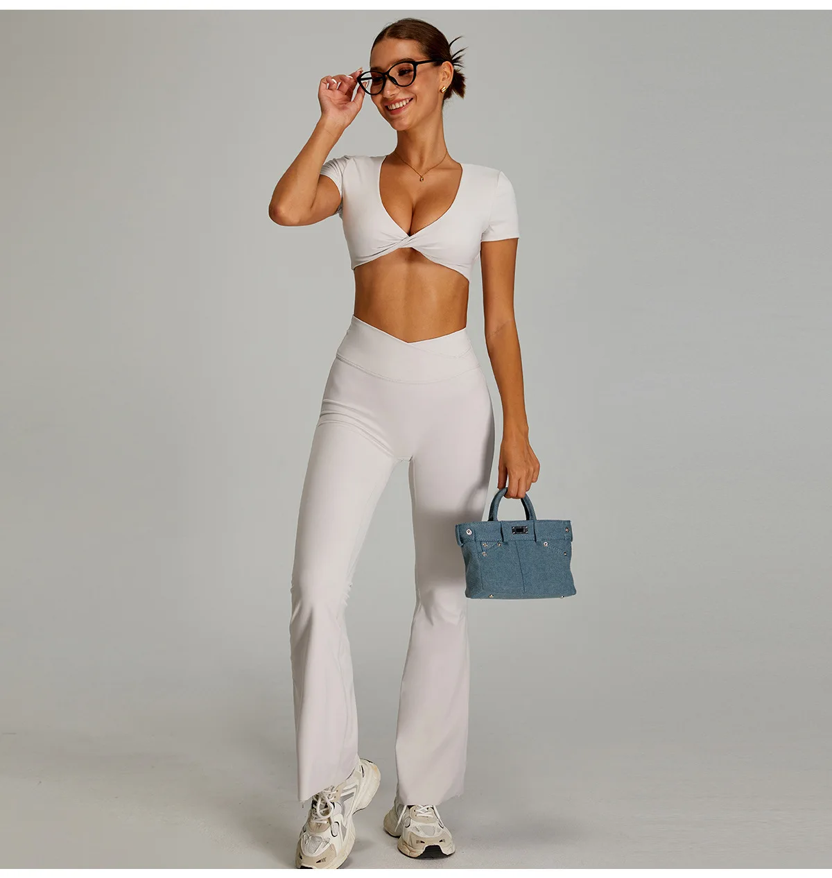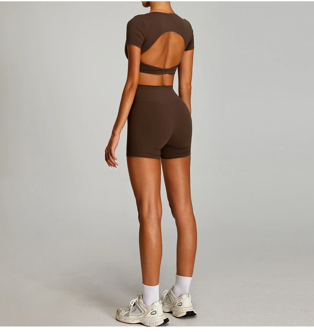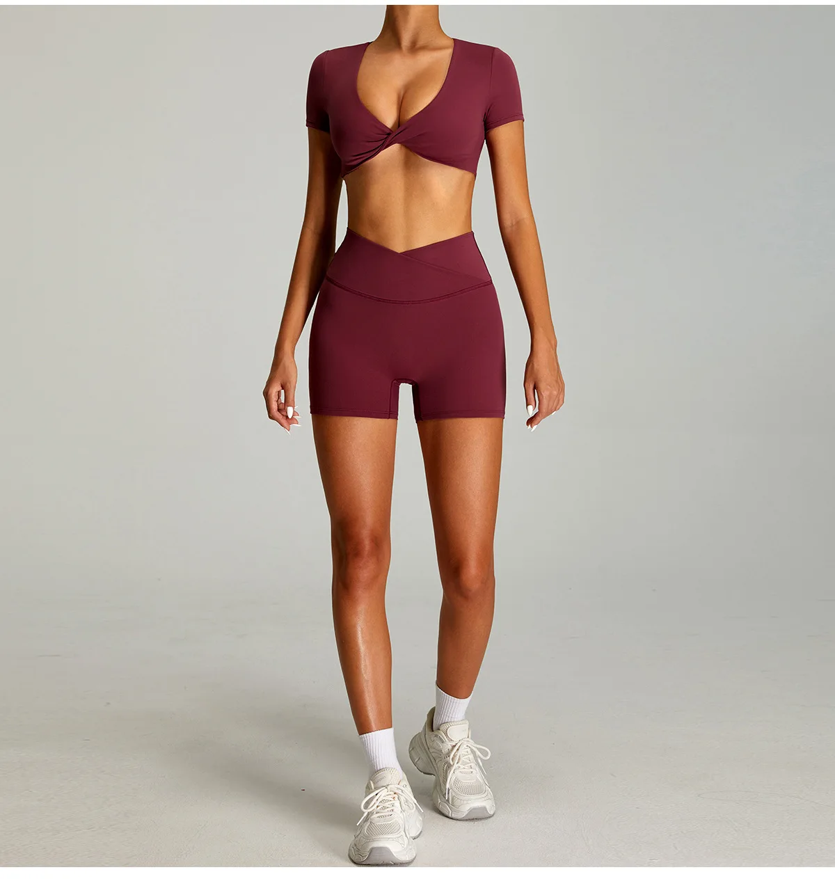 Conjunto deportivo de yoga para mujer mikeyoga, 2 piezas, secado rápido, ideal para gimnasio, correr y entrenar. Incluye ropa deportiva de manga corta para yoga.