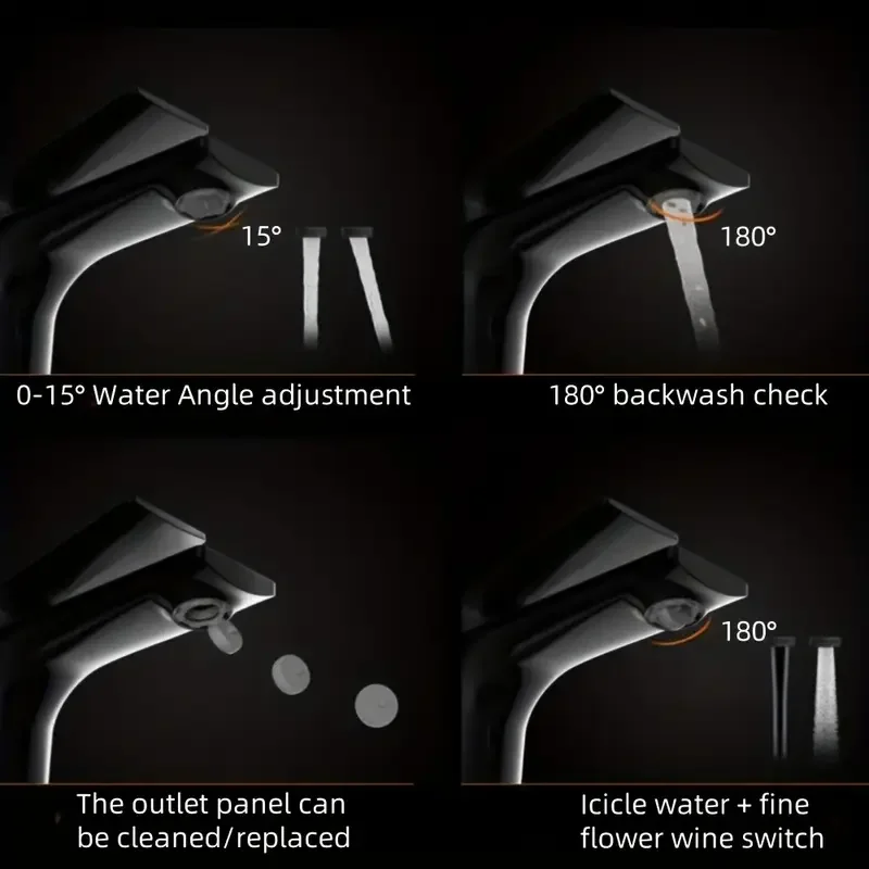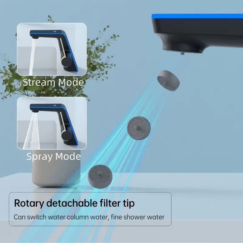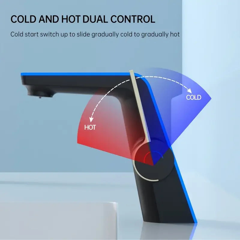Grifo de baño moderno con pantalla digital de temperatura: interfaz táctil, sin pilas, interruptor Celsius/Fahrenheit.