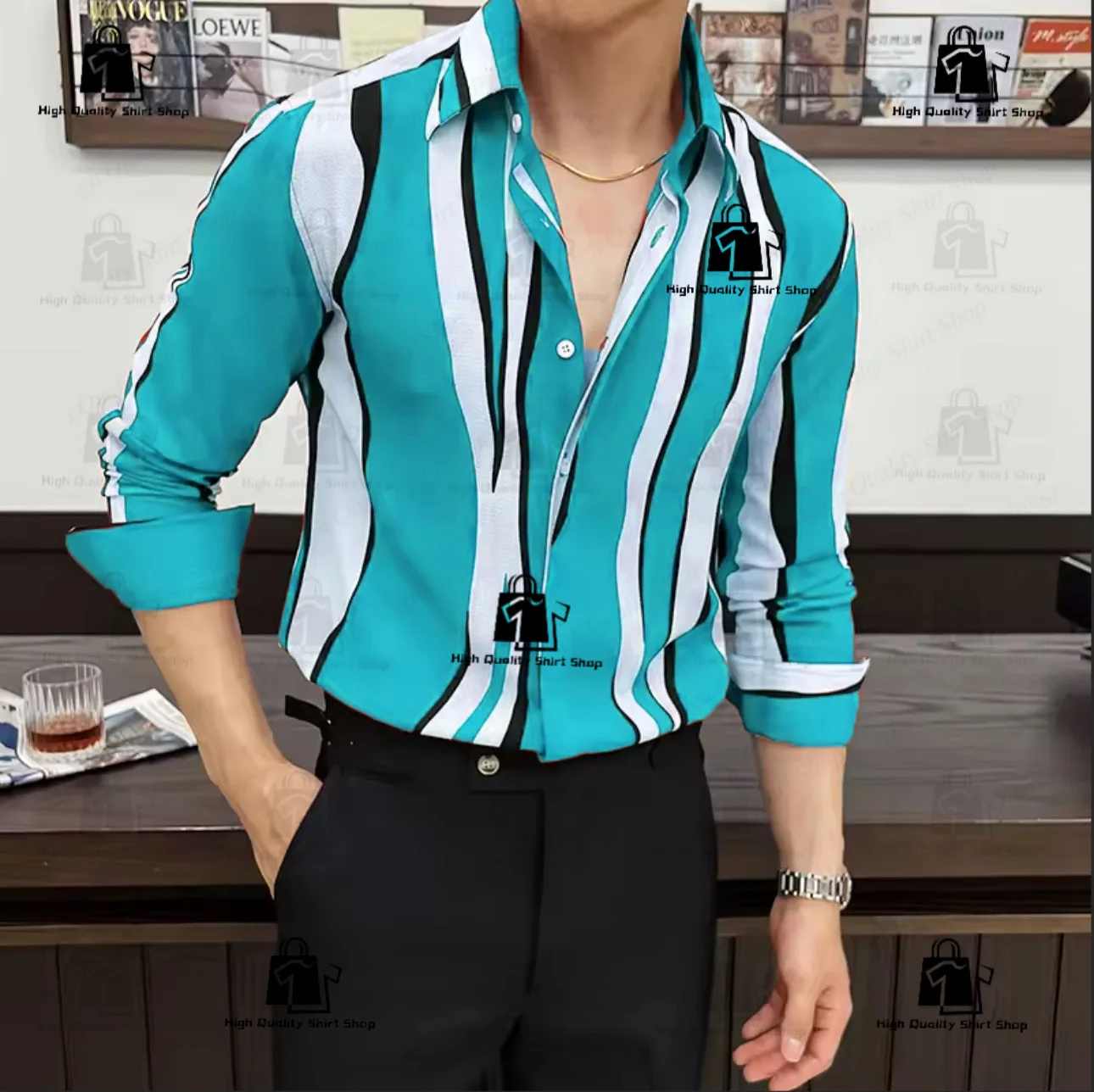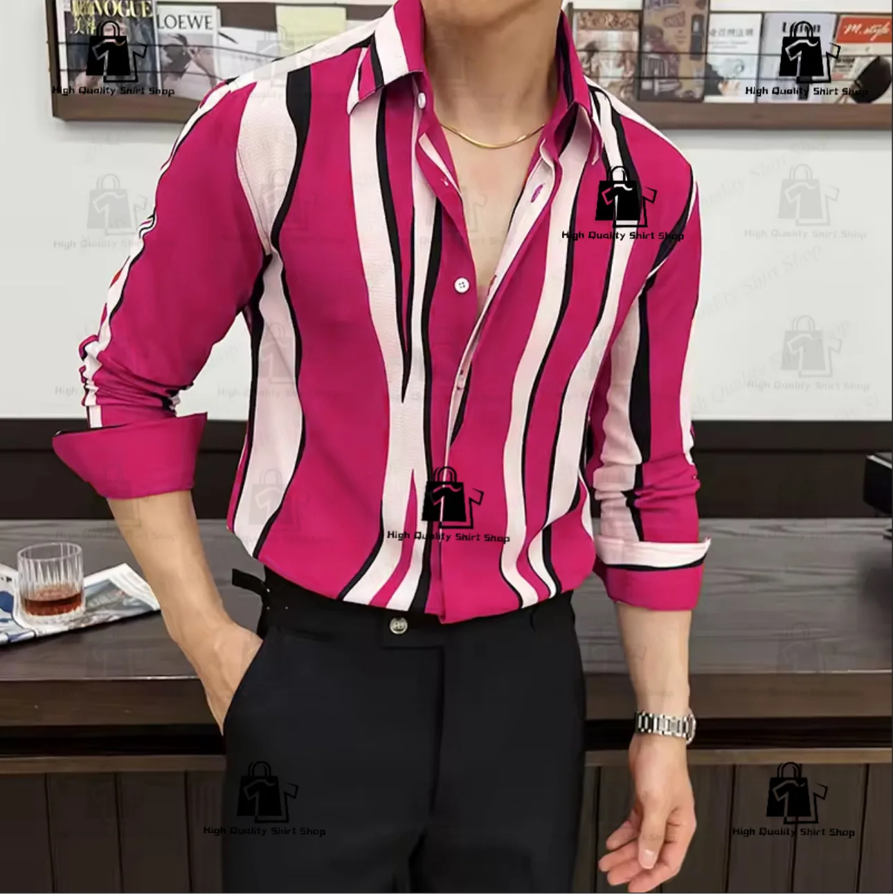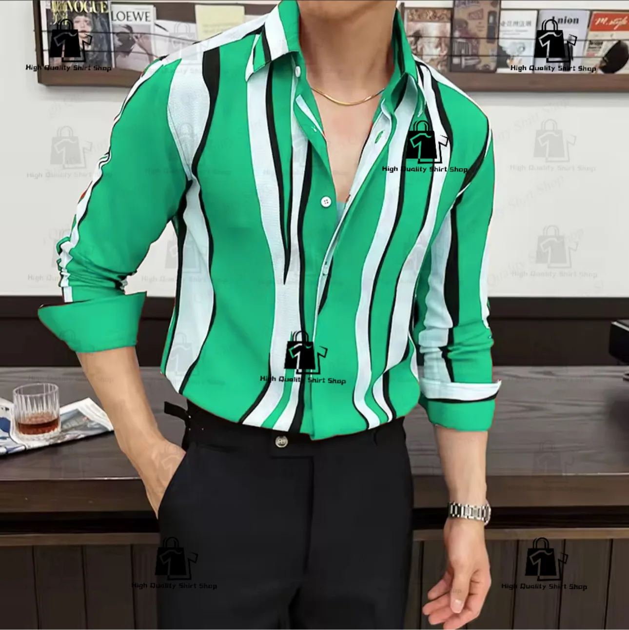 Camisa de rayas para hombre, estilo moderno, manga larga, corte holgado, informal, versátil, para uso diario y urbano.