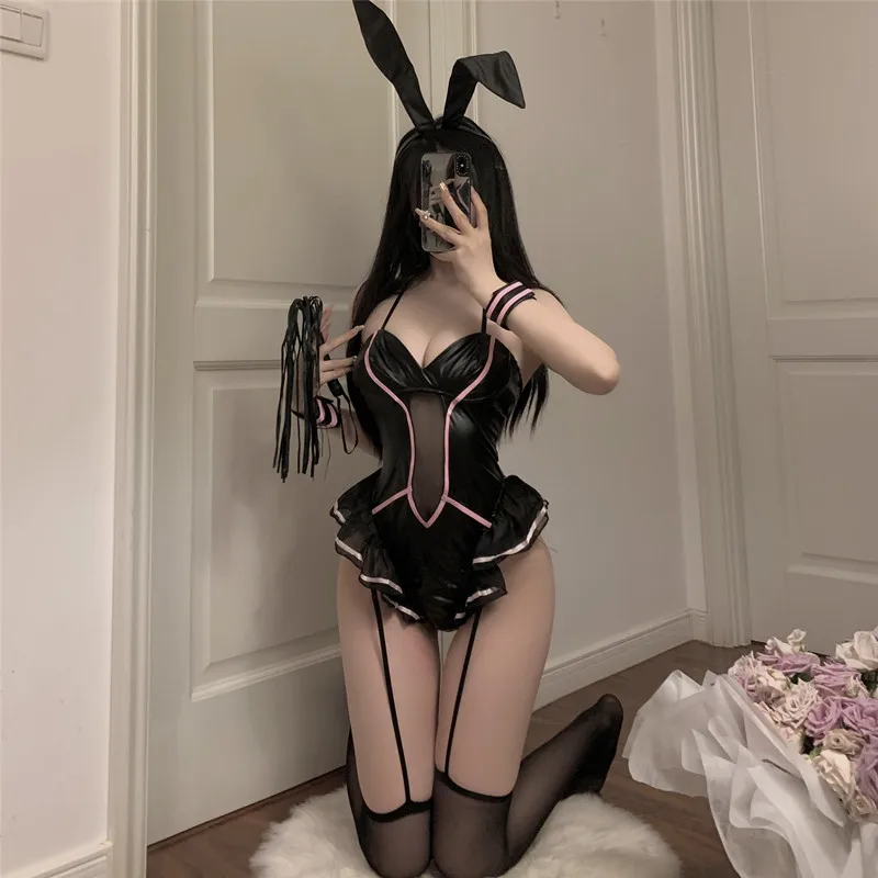 NEW Bunny Girl Cosplay Costume PU Leather One Piece Bodysuit Sexy Black Pink Rabbit Suit Kawaii Ears Anime Outfit for Women