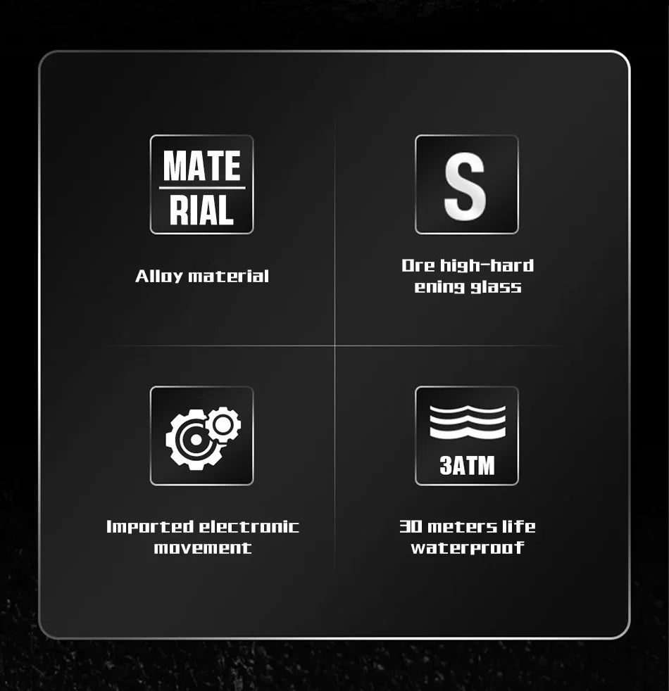 Características : Cronómetro, Retroiluminación, Resistente a golpes, Pantalla LED, Repetidor, Luminoso, Fecha automática, Cronógrafo, Calendario completo, Resistente al agua, Alarma, Visualización de semana, Manecillas luminosas