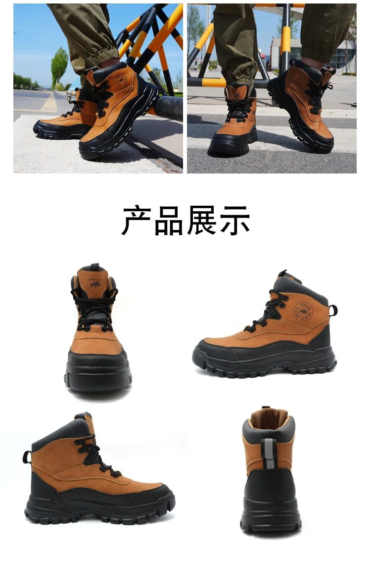 Nuevos zapatos de seguridad de moda, de caña alta, antiaplastamiento y antiperforación, con puntera de acero, resistentes al desgaste, para trabajo, calzado de protección para hombre.