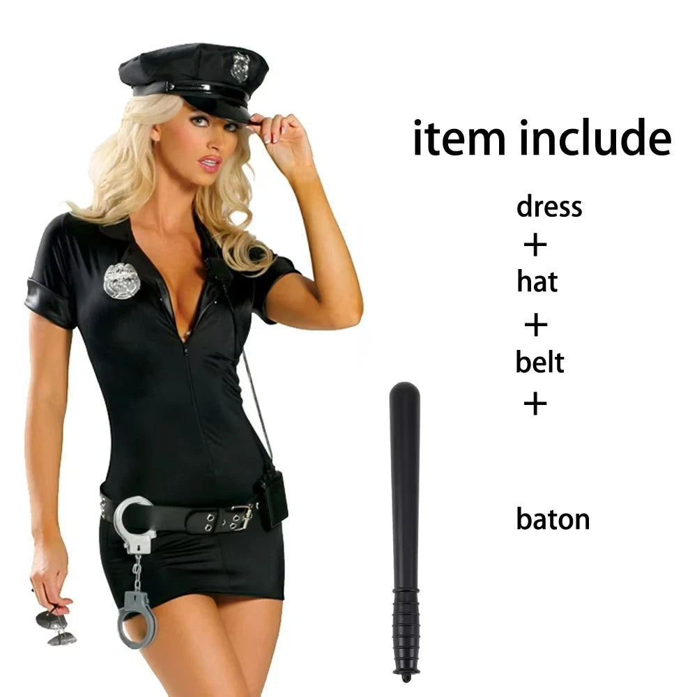 New Halloween Carnival Sexy Policewoman Officer Blue Uniform Policewoman Suit Costume Adult Policewoman Role Playing Costume