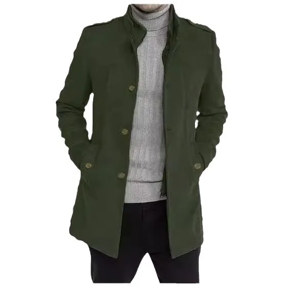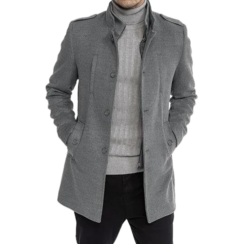 Nueva moda masculina: elegante cortavientos de otoño/invierno, abrigo de lana con doble cuello, chaquetas de lana para hombre de mediana edad, estilo ejecutivo.