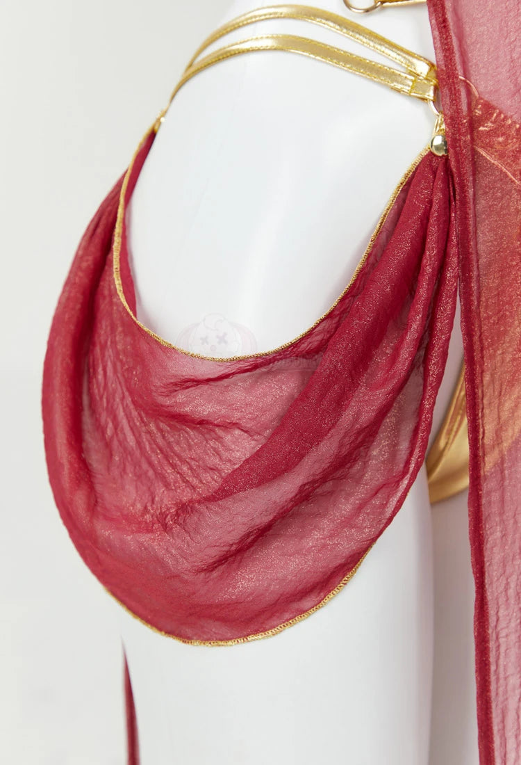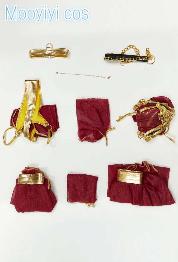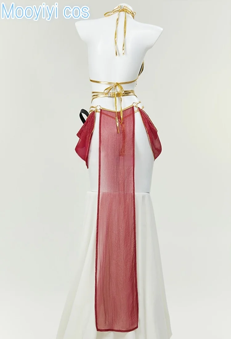 New Mooyiyi cos Leia Scarlet Salsa Dress Cosplay costume Halloween Christmas S-XL 2025 Sexy Red Dancer Dress