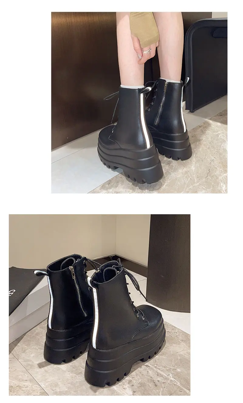 Botines de piel sintética para mujer, estilo gótico, con plataforma, puntera redonda y cordones, ideales para otoño e invierno. Talla 11.