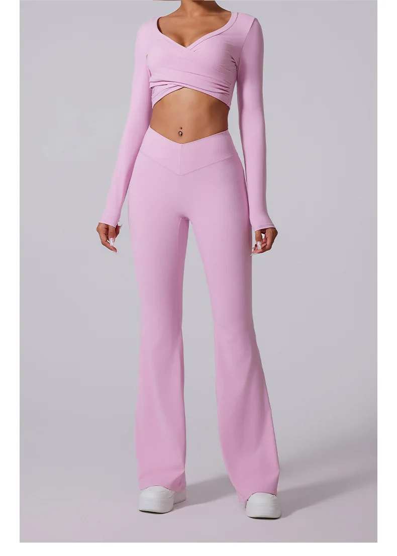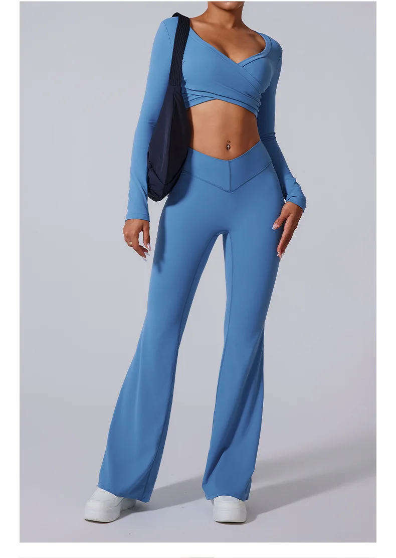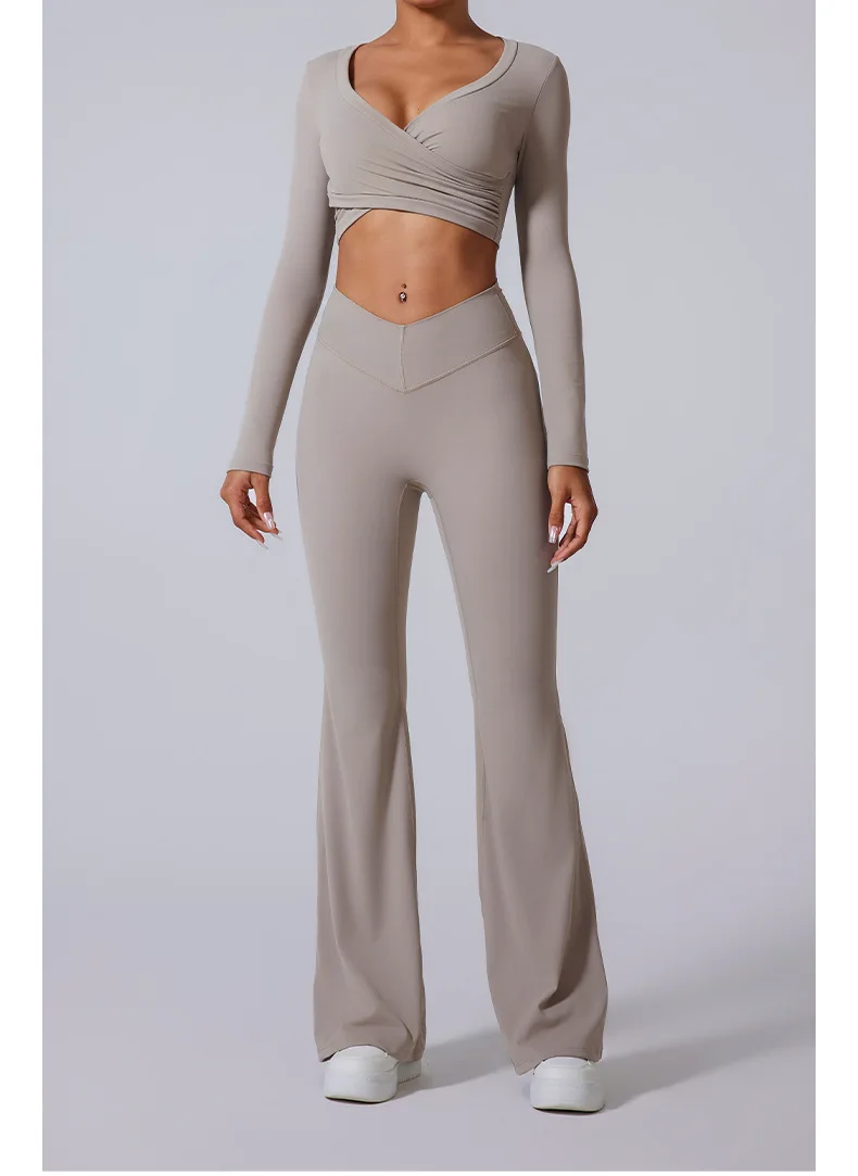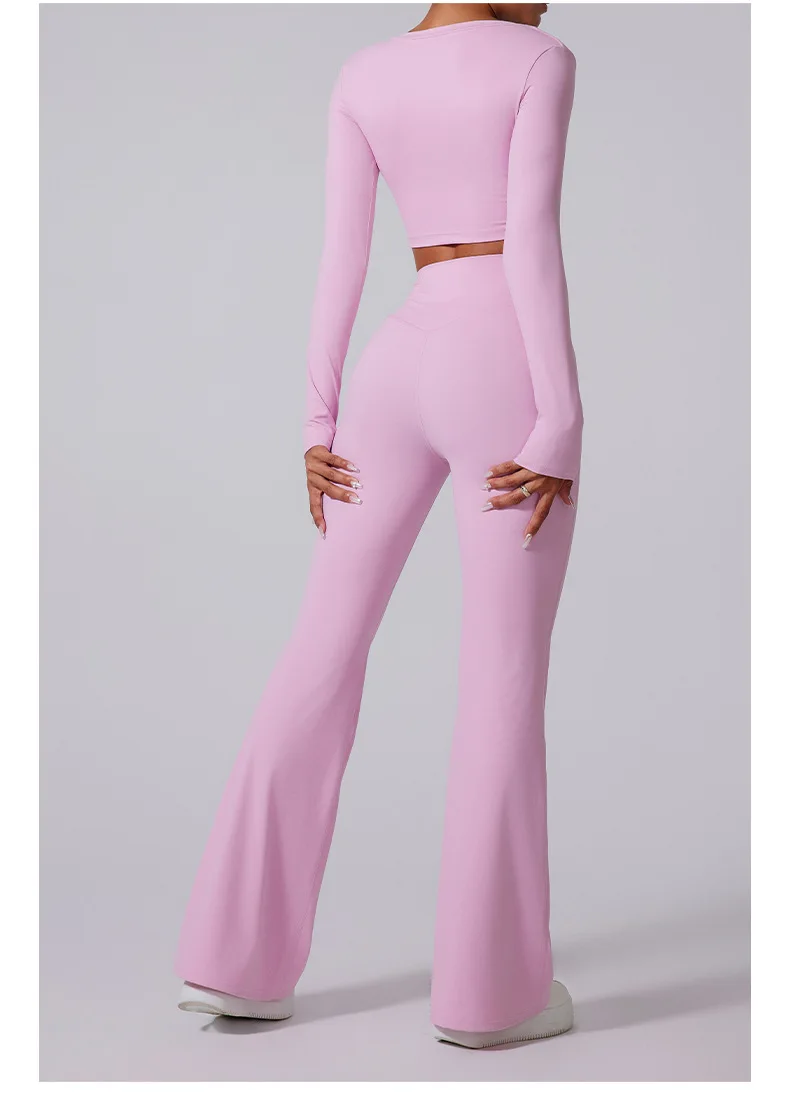 Conjunto de yoga para mujer: pantalones acampanados, ropa deportiva para gimnasio, top push-up de manga larga, estilo deportivo y sexy.