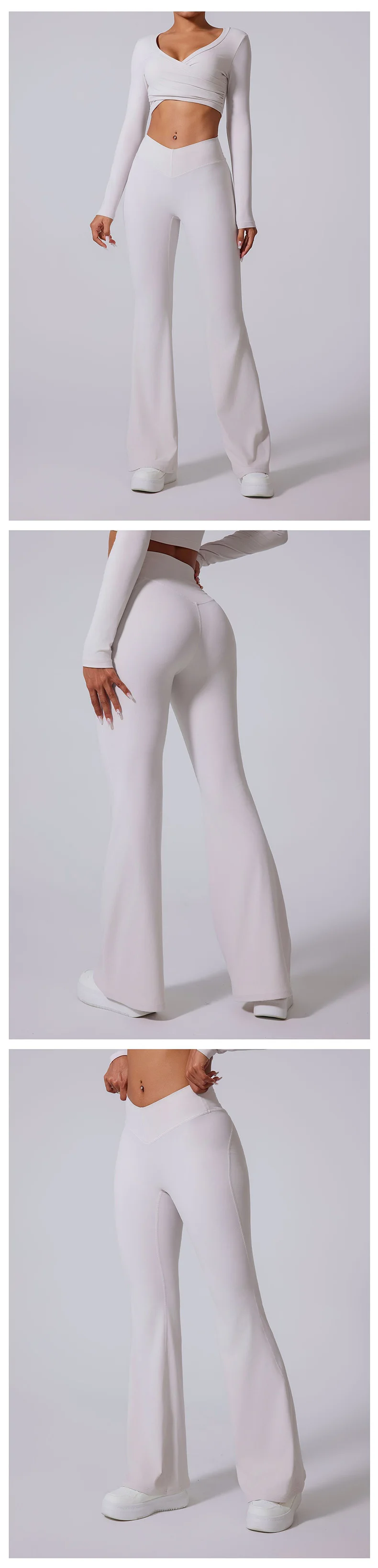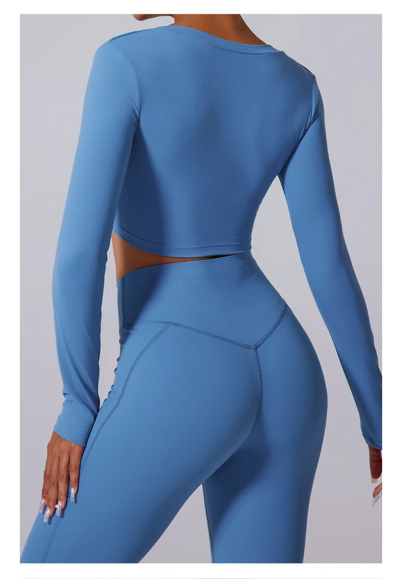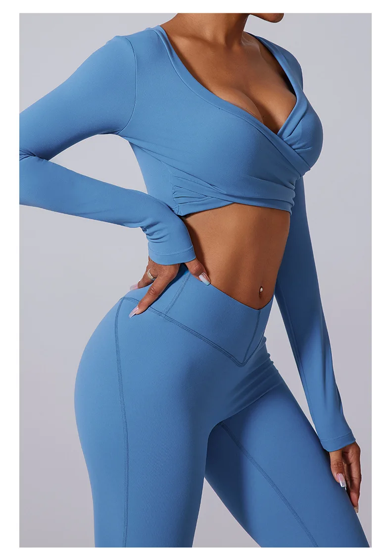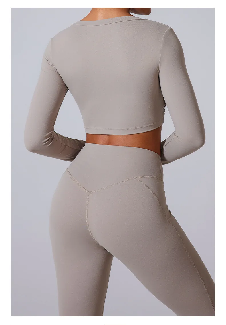 Conjunto de yoga para mujer: pantalones acampanados, ropa deportiva para gimnasio, top push-up de manga larga, estilo deportivo y sexy.