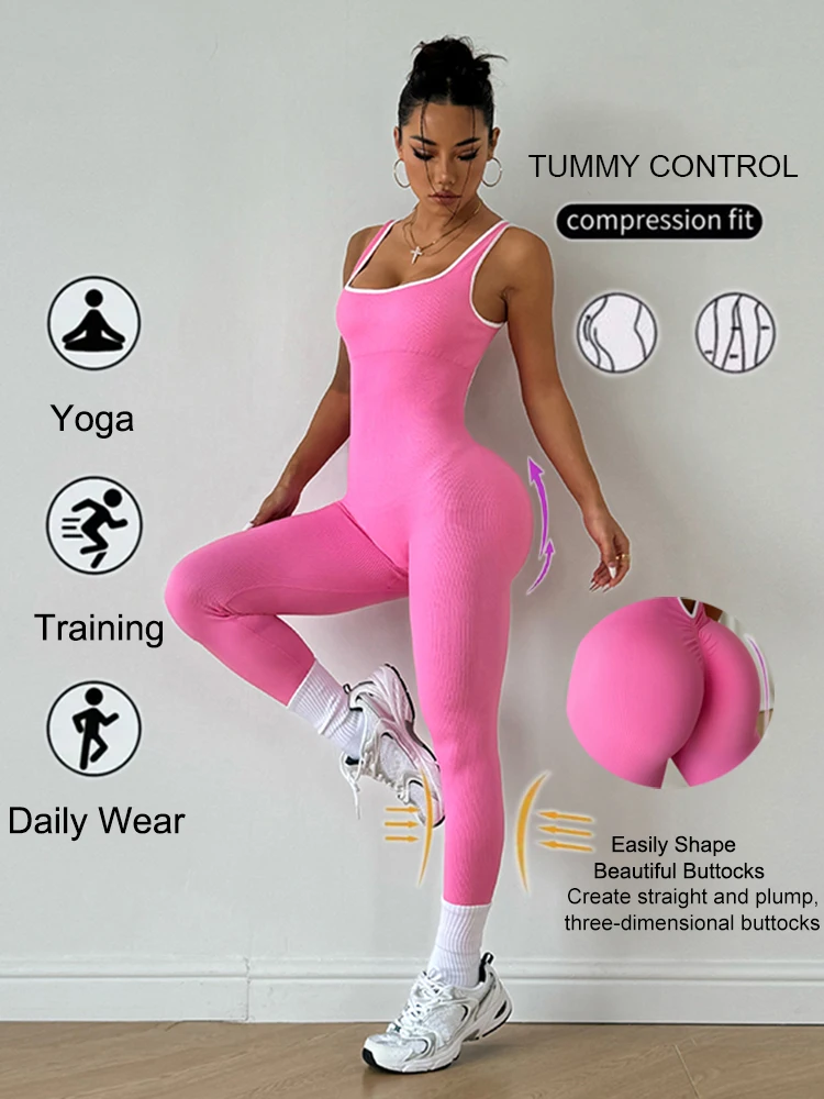 Monos deportivos de yoga para mujer, color rosa, transpirables, de secado rápido, para gimnasio, push up y entrenamiento.