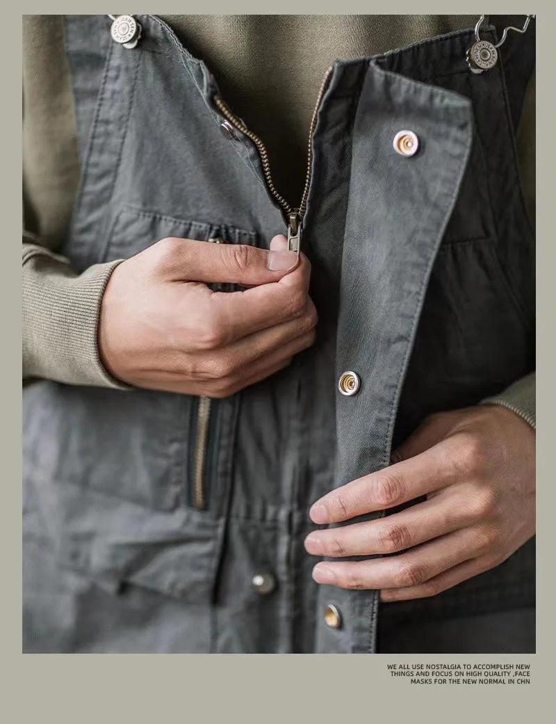 Retro American Cotton Overalls Bibs Loose Washing Jumpsuit Men's Suspenders Four Seasons Full Length Baggy Pants