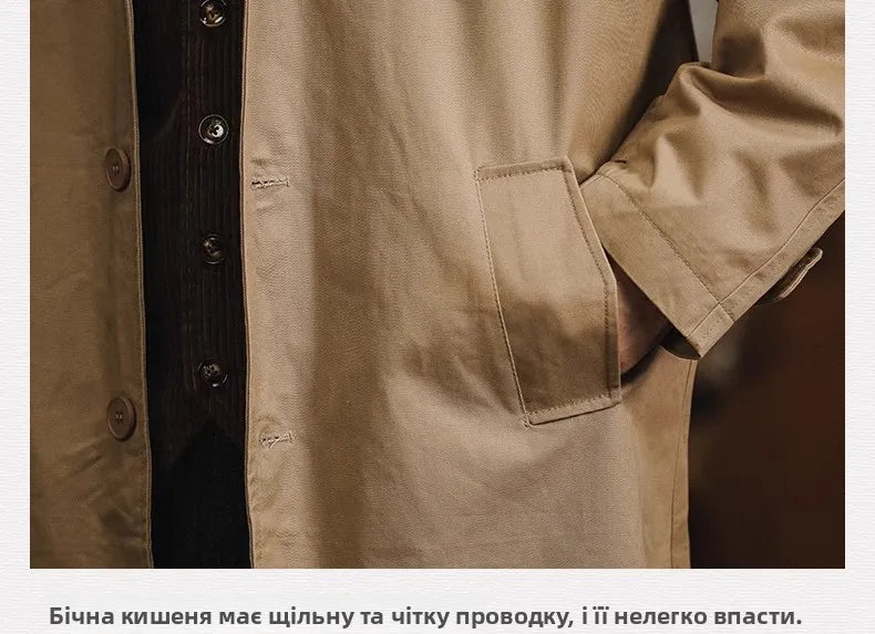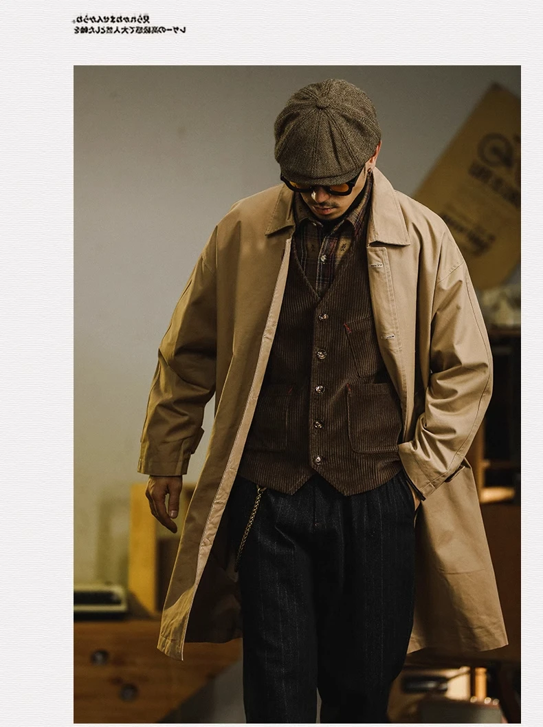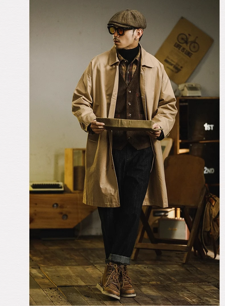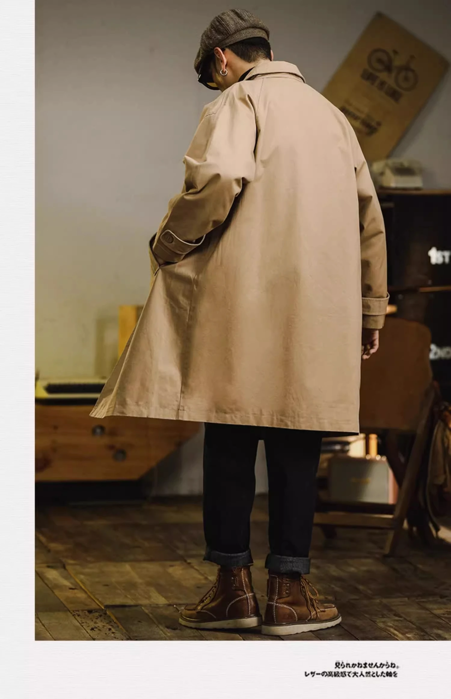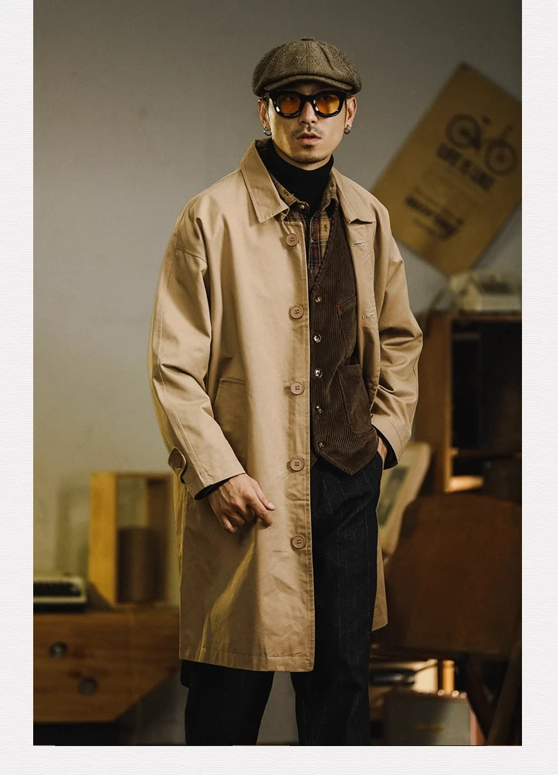 Retro American Sle Men's Long Coat Cotton Casual Faion Urban Youth Pure Color Button up Loose Fit Autumn Winter Coat