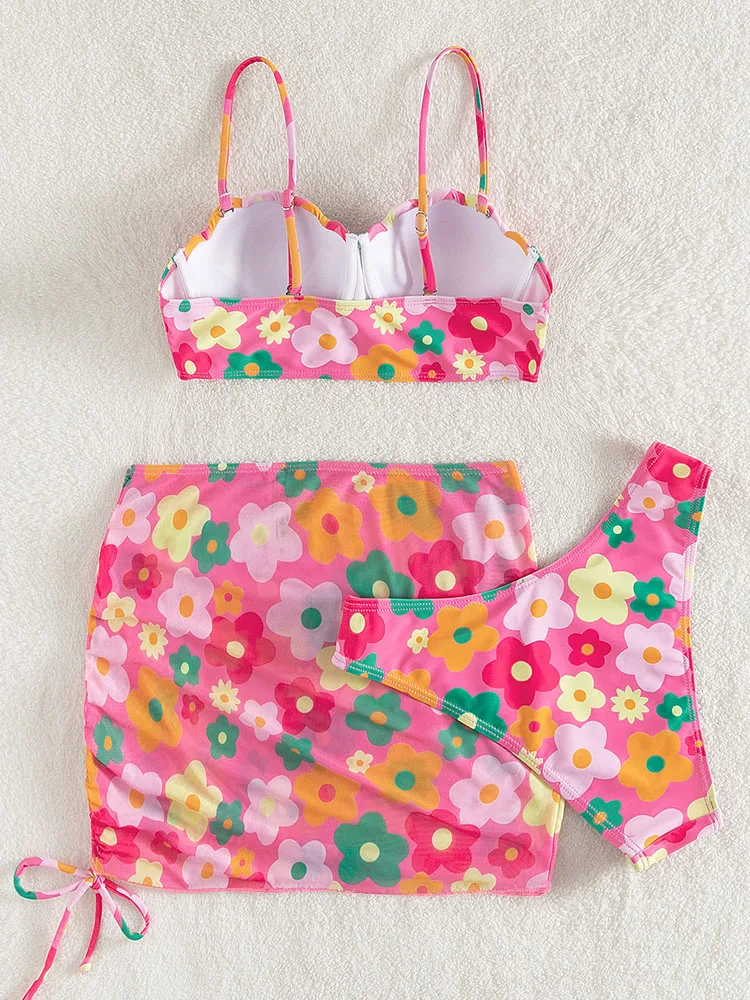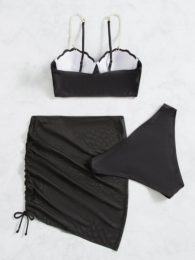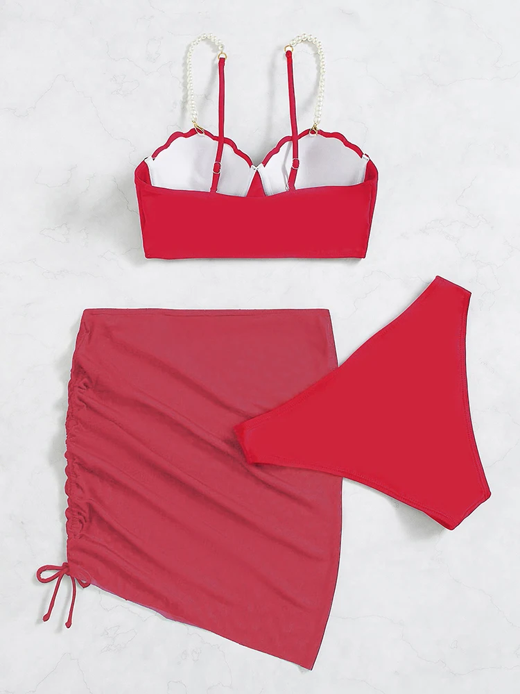 Conjunto de bikini sexy de 3 piezas para mujer, traje de baño con falda, novedad de 2023, bikini push up para mujer, ropa de playa con perlas sintéticas.