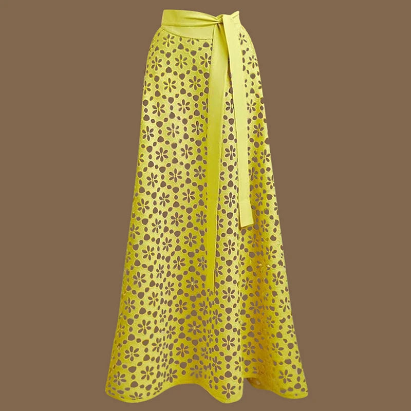Sexy Deep V Neck Women Swimwear Yellow Color Laser Cutting Flower Hollow One Piece Swimsuit Women Backless Monokini Bathing Suit