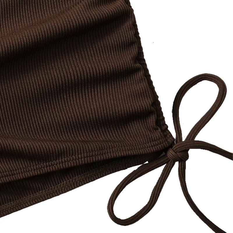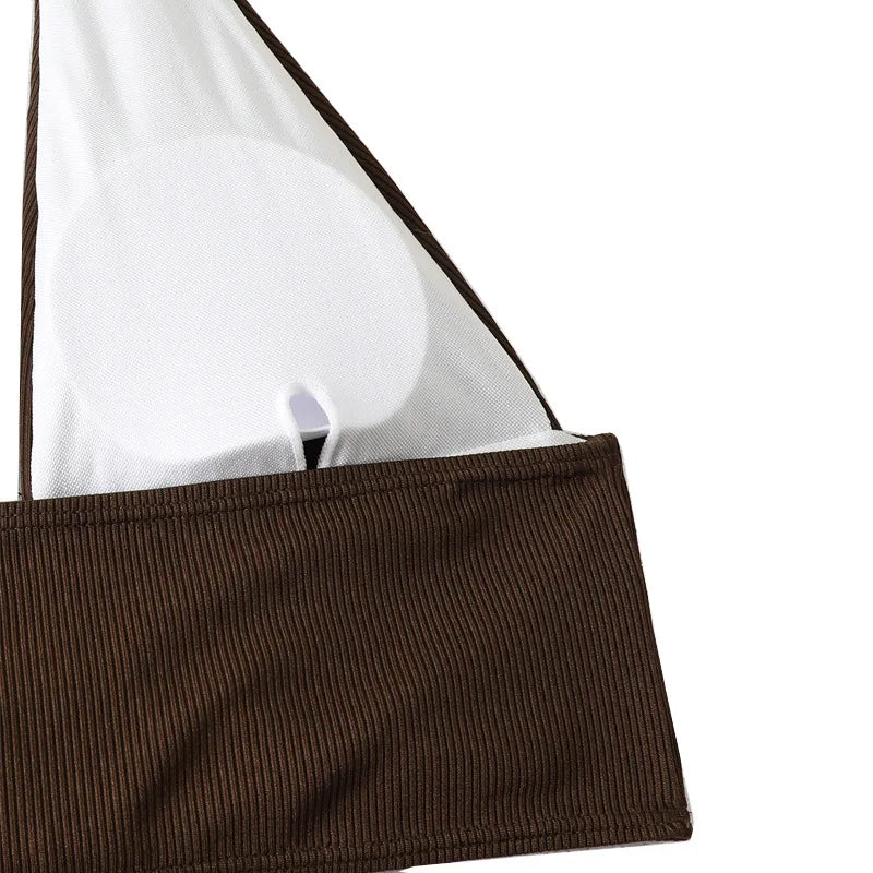 Bikini sexy de cintura alta para mujer, traje de baño de dos piezas, conjunto de bikini brasileño marrón, 2024