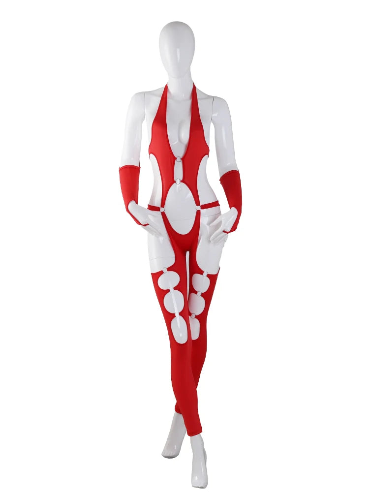 Lencería sexy y caliente de malla de encaje de color sólido con estampado de flores, monos sin espalda con escote en V profundo, tirantes sin mangas, ropa interior encantadora y fina