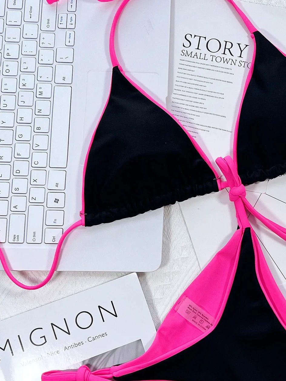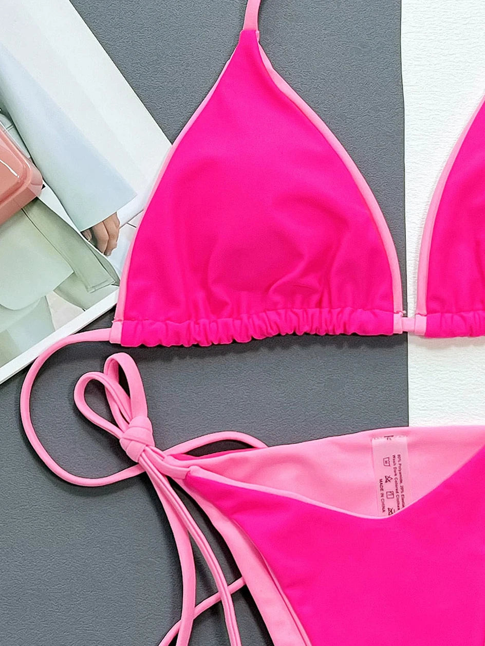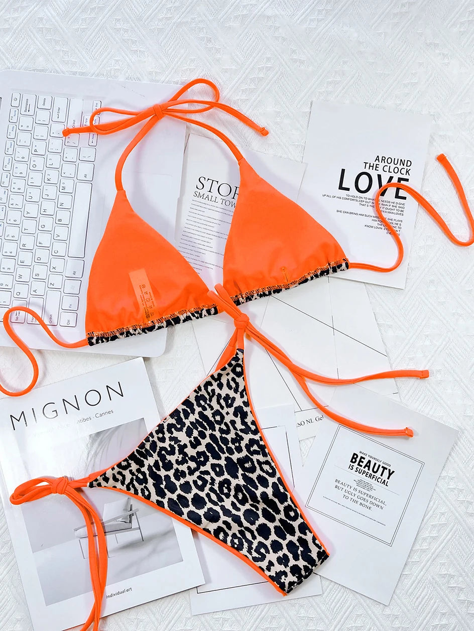 Microbikini de leopardo sexy para mujer, traje de baño femenino de 2023, conjunto de bikini tipo tanga, brasileño, con cuello halter, ropa de playa con cordones