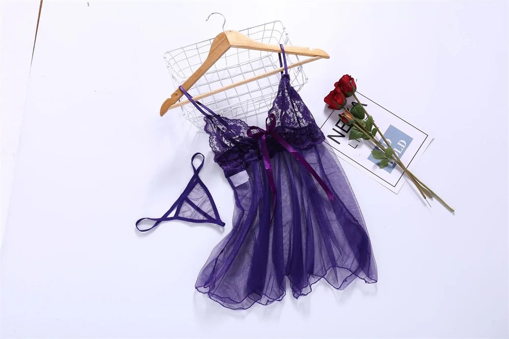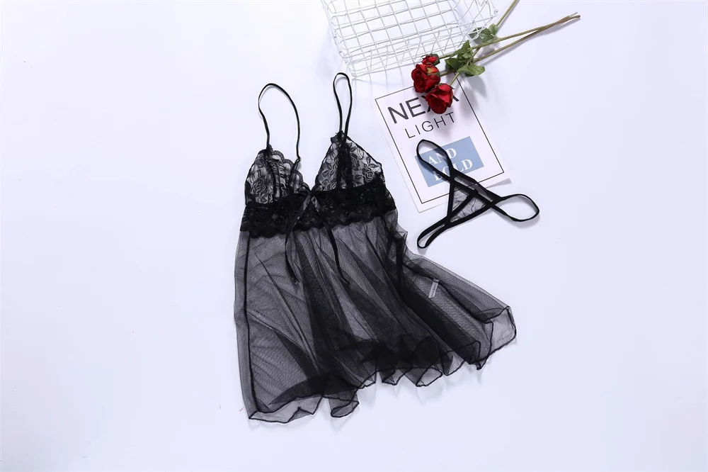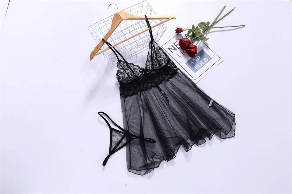 Lencería sexy para mujer, pijamas sin entrepierna, vestido de noche de encaje, ropa interior femenina exótica, camisón, tanga, disfraces eróticos