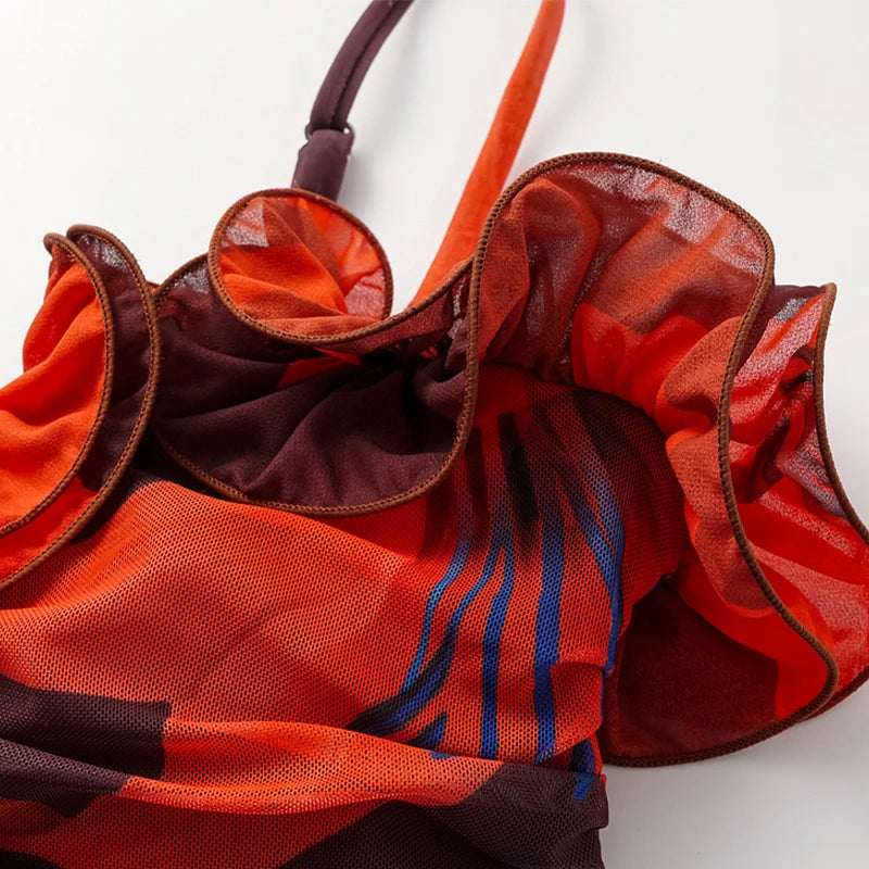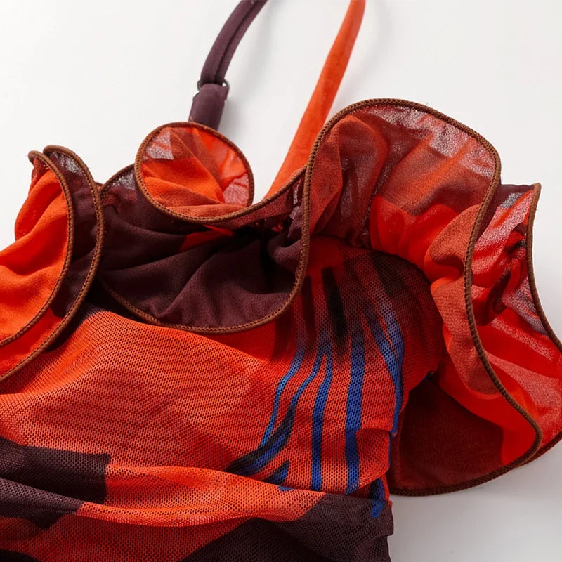 Sexy Swimsuit Women Bikini Set Lily Contrast Print Fabric Patchwork Skirt Push Up Swimsuit Biquini Bodysuit Bathing Suits