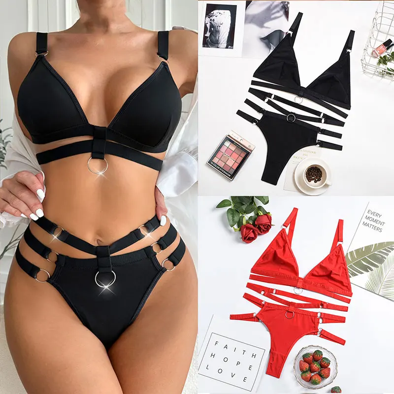 Conjunto de sujetador exótico con perspectiva de encaje sexy para mujer, conjunto transparente sexy con liguero, conjunto de lencería bondage