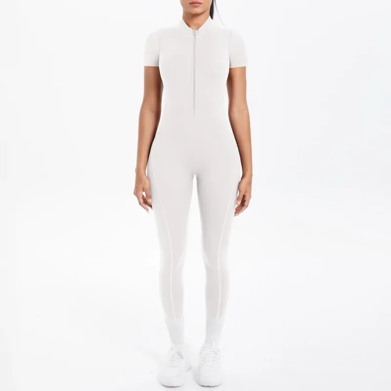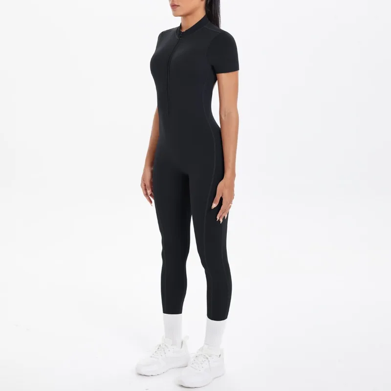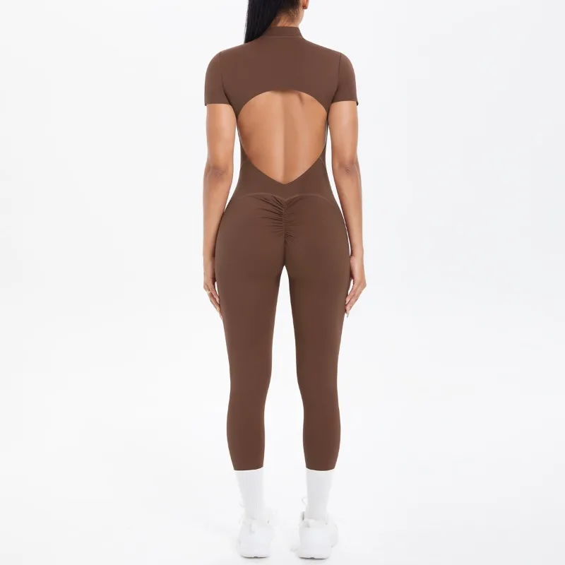 Mono deportivo de yoga sexy con cremallera frontal, espalda descubierta, manga corta, pantalones cortos, ropa deportiva para fitness, correr, gimnasio, yoga y actividades deportivas para mujer.
