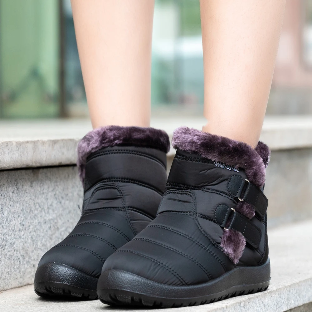 Botas de nieve cálidas de piel para mujer, botines de tobillo de talla grande, informales, planos, de invierno, antideslizantes, a la moda, impermeables